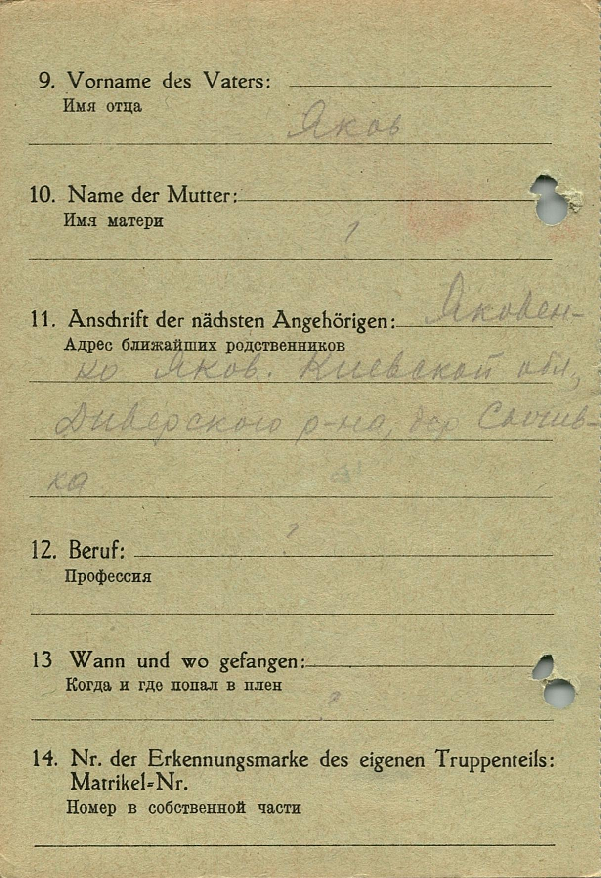 Военнопленные, трофейные карточки. Киевская обл.