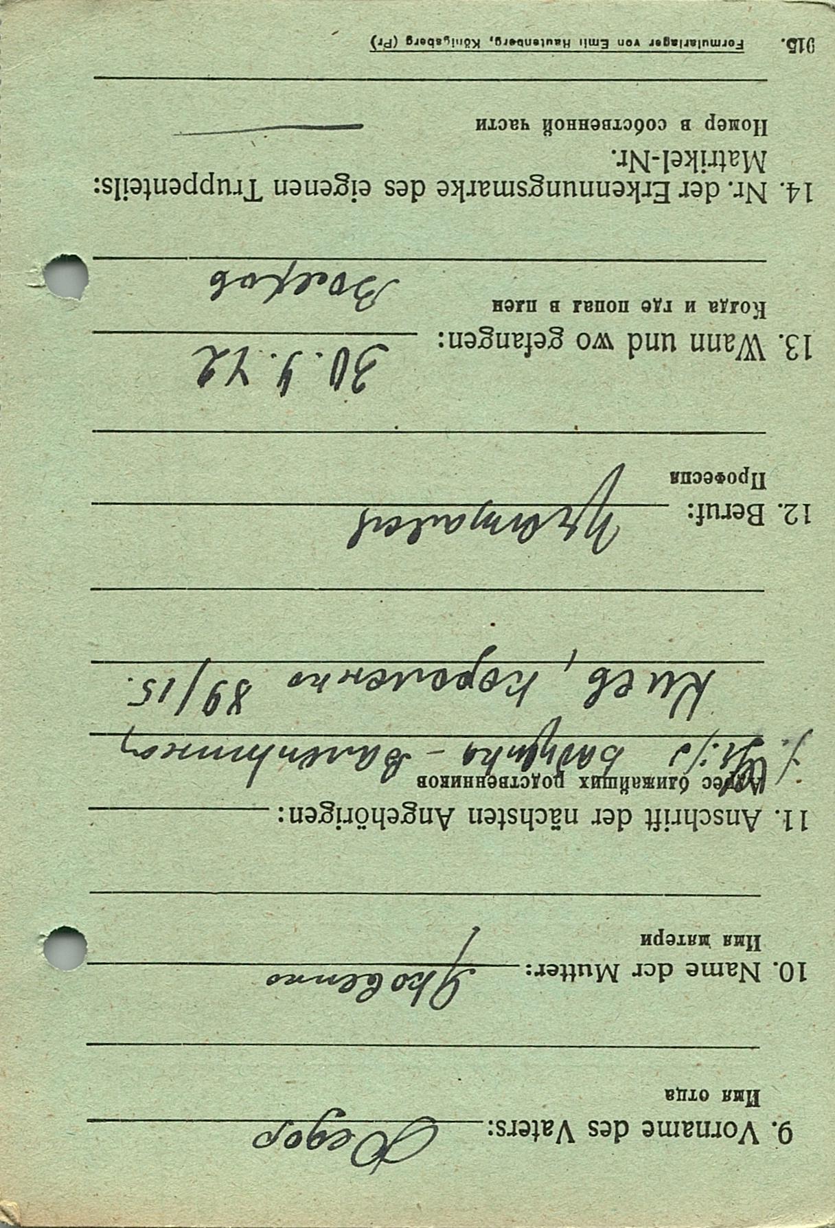 Военнопленные, трофейные карточки. Киевская обл.