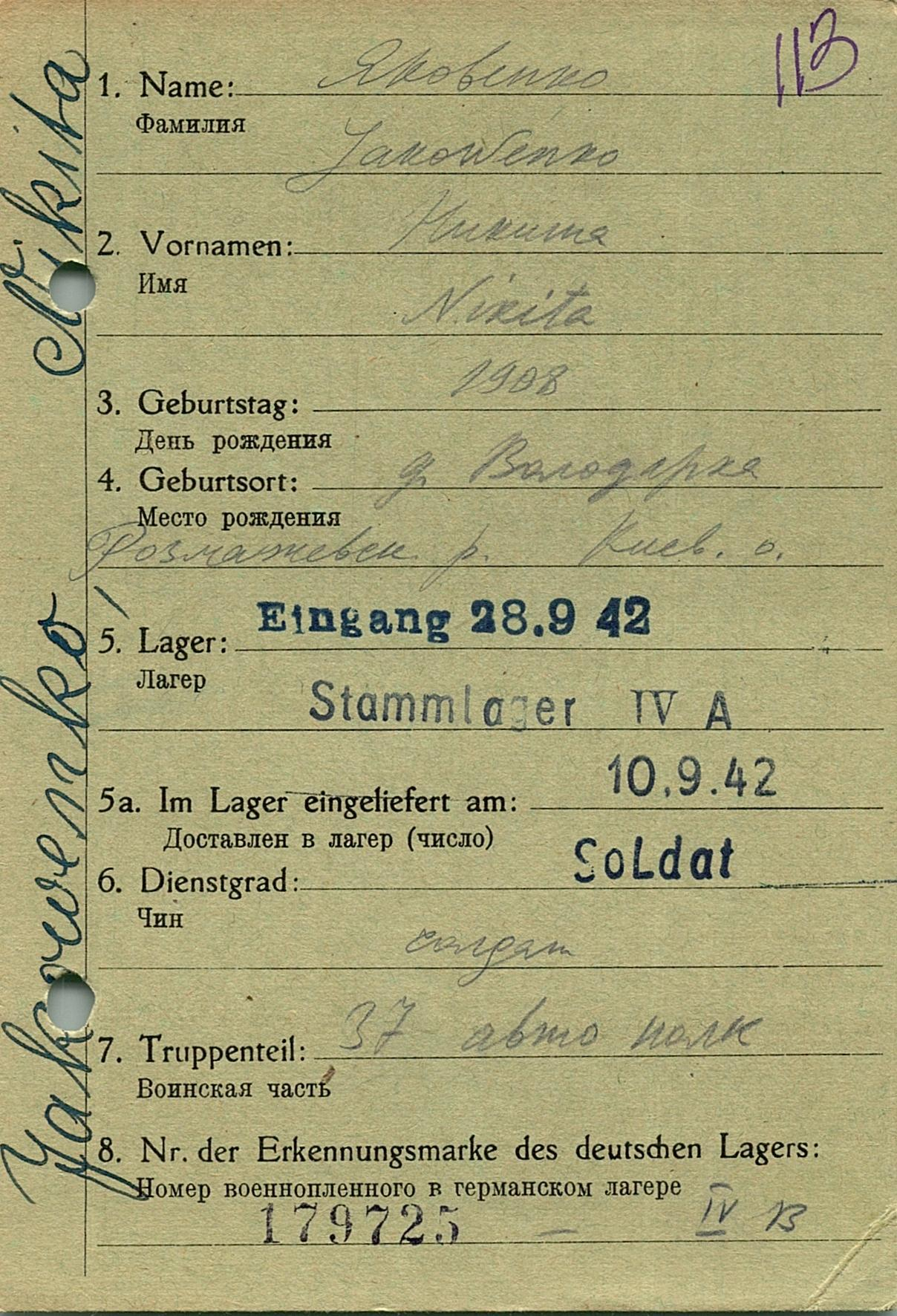 Военнопленные, трофейные карточки. Киевская обл.