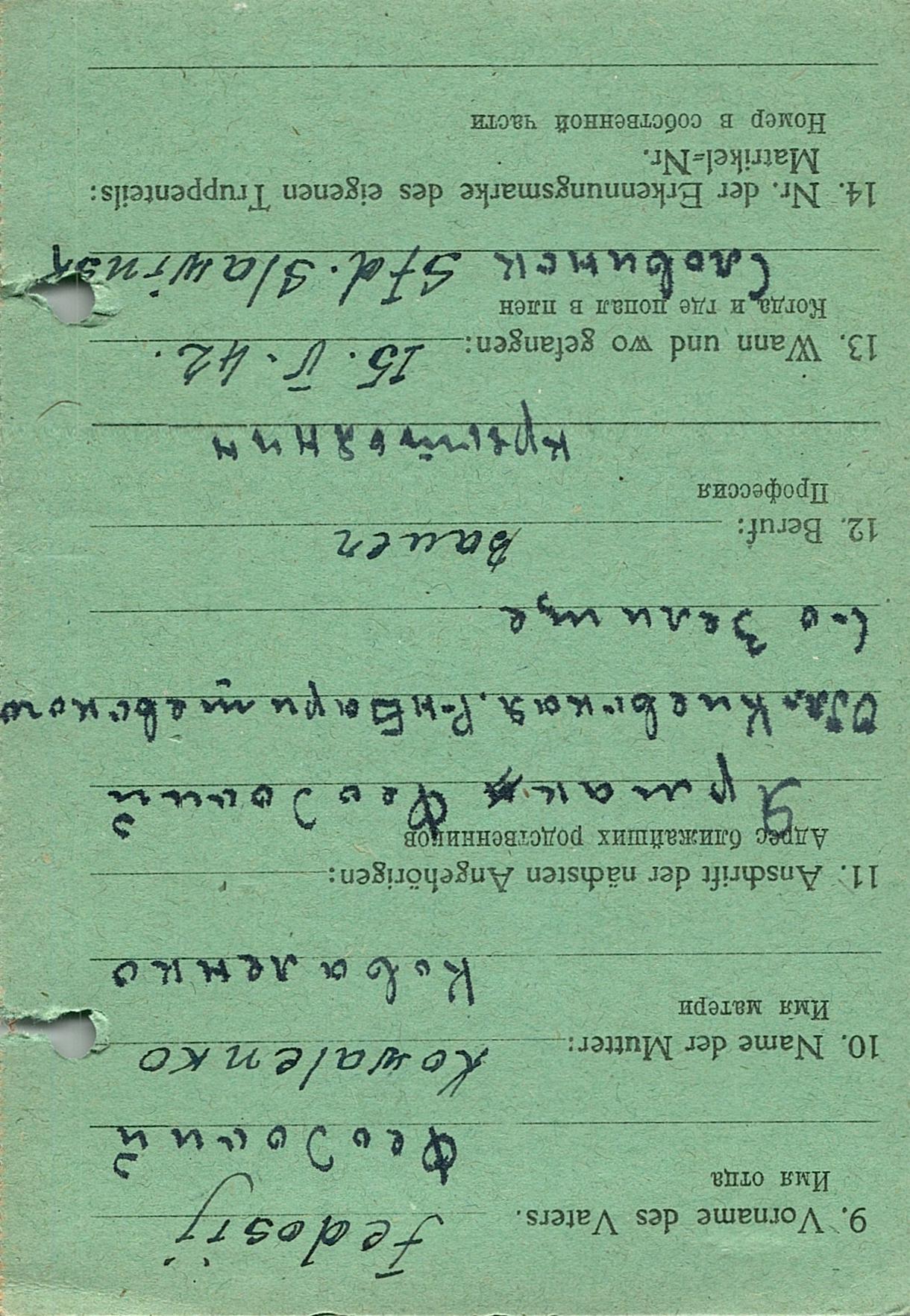 Военнопленные, трофейные карточки. Киевская обл.
