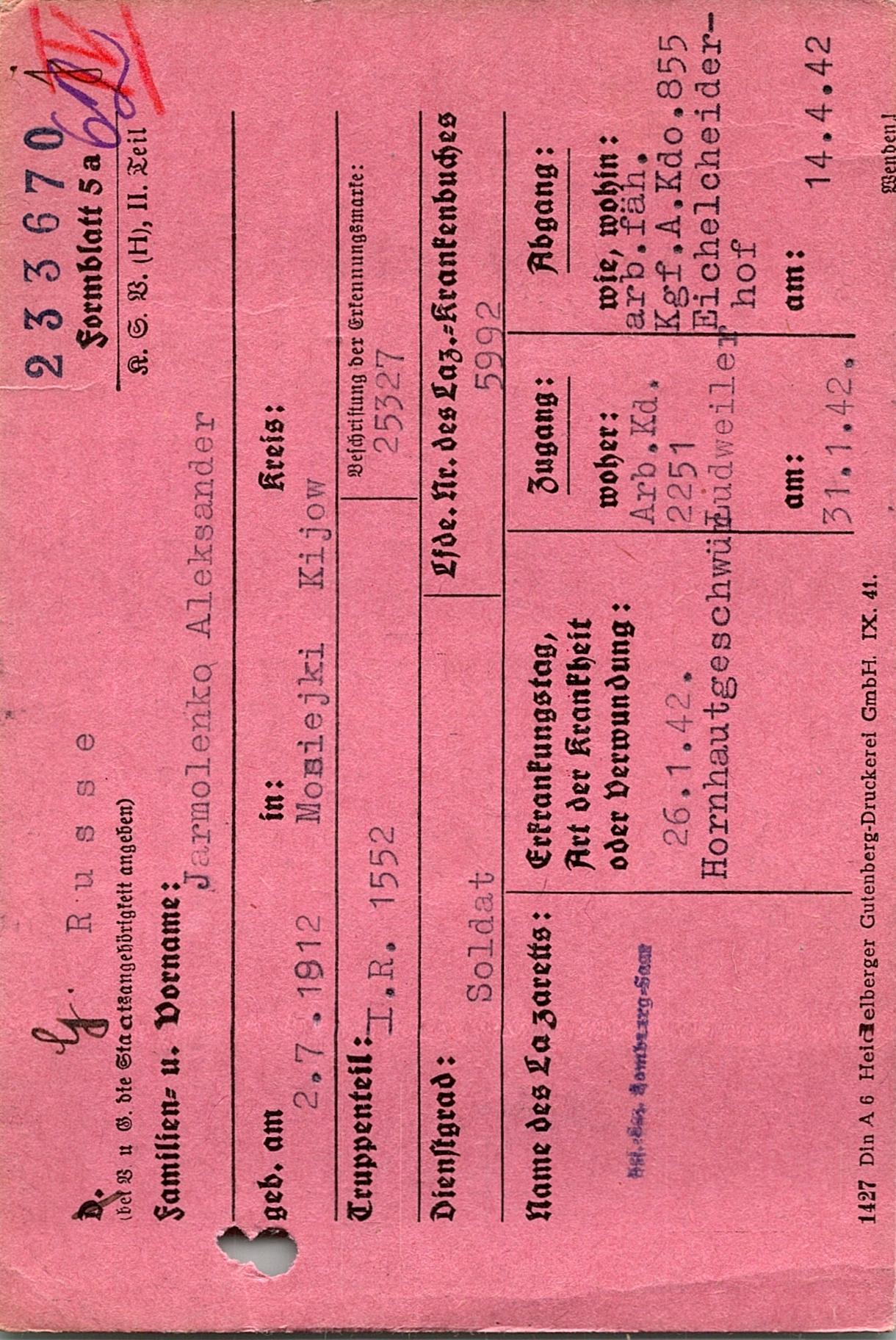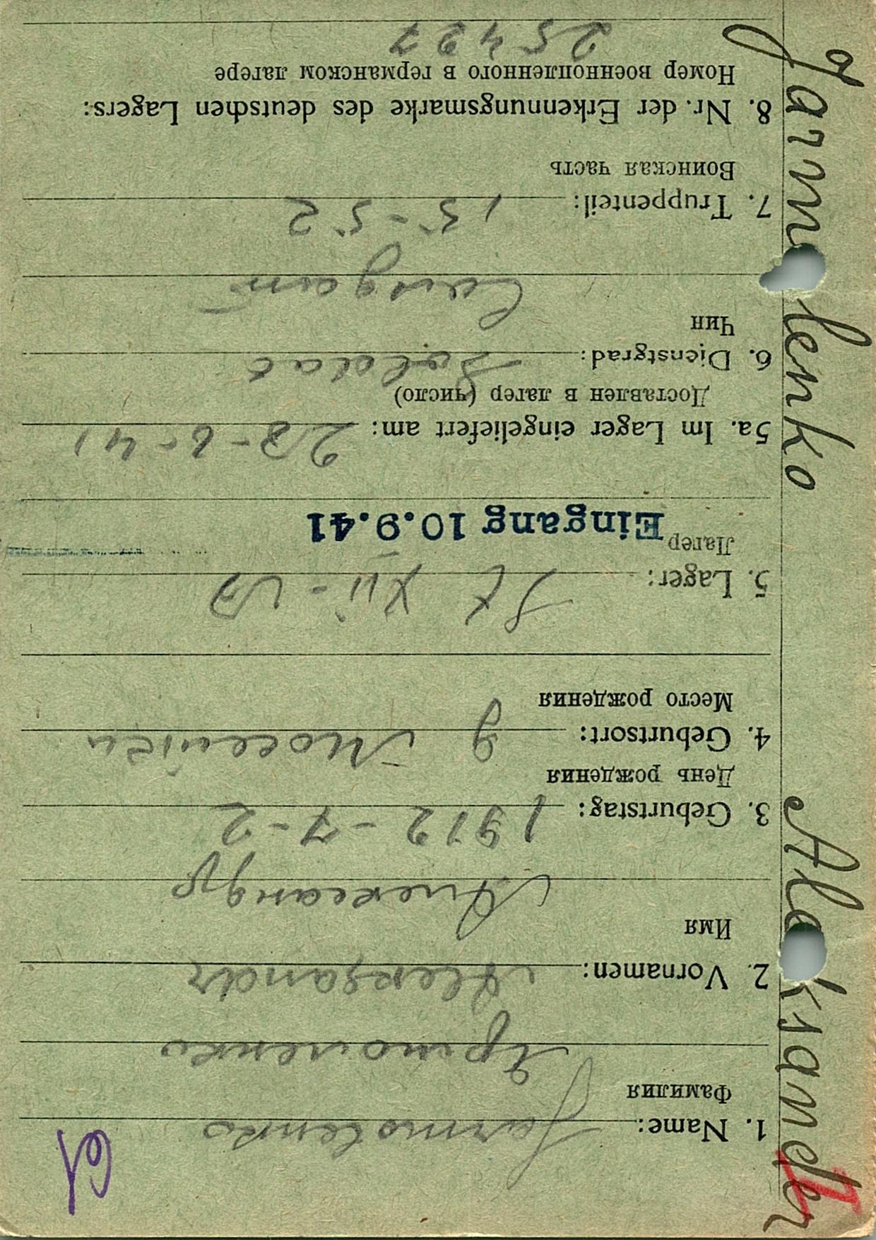 Военнопленные, трофейные карточки. Киевская обл.
