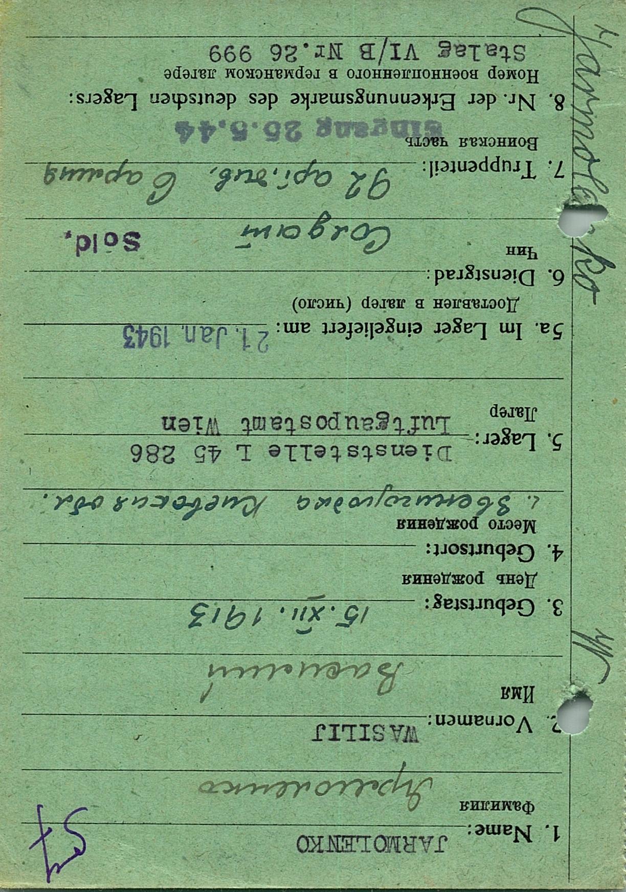 Военнопленные, трофейные карточки. Киевская обл.