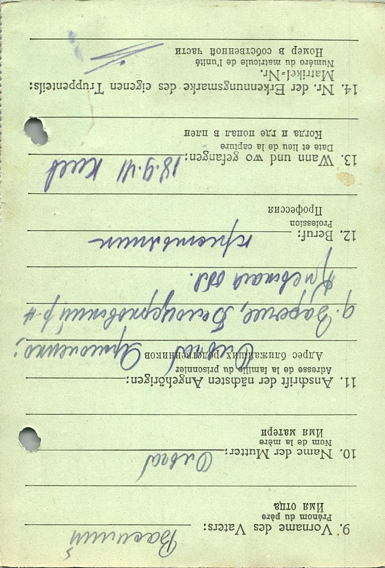Военнопленные, трофейные карточки. Киевская обл.