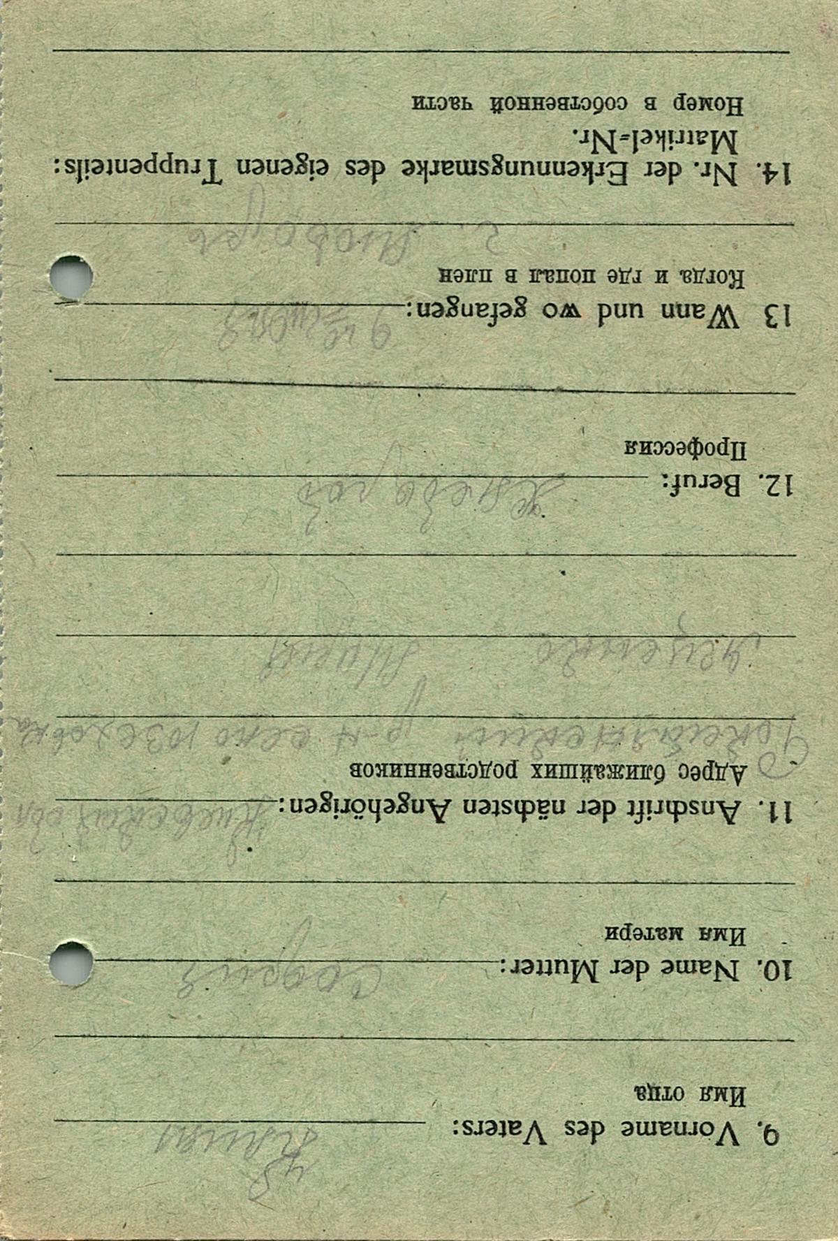 Военнопленные, трофейные карточки. Киевская обл.