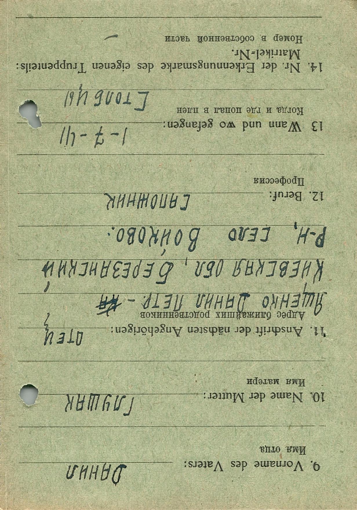Военнопленные, трофейные карточки. Киевская обл.