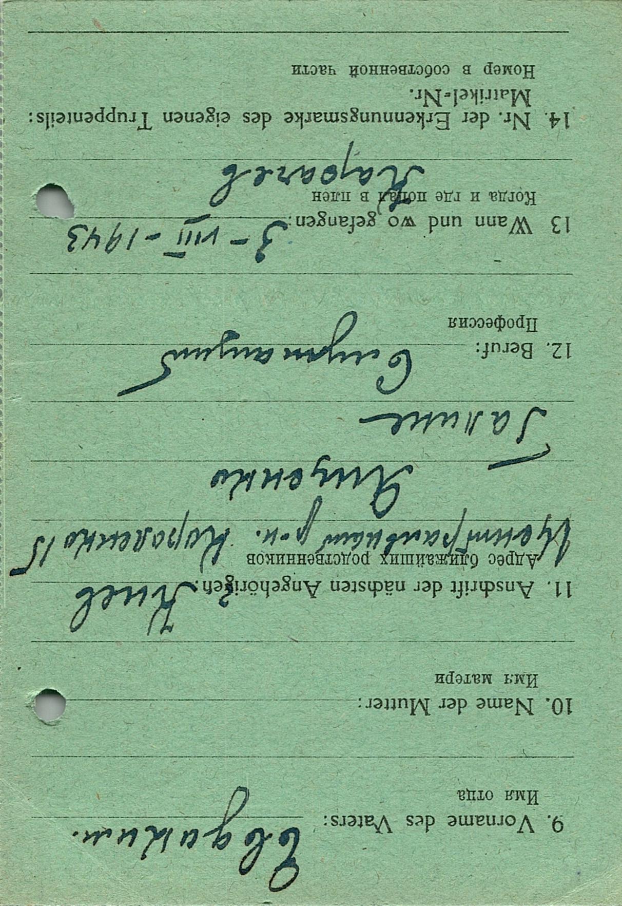 Военнопленные, трофейные карточки. Киевская обл.