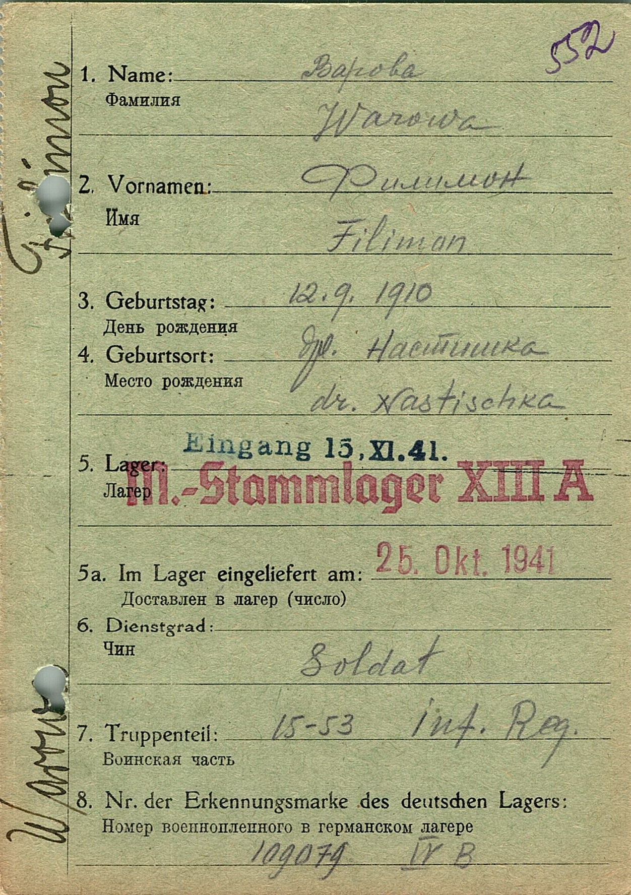 Военнопленные, трофейные карточки. Киевская обл.