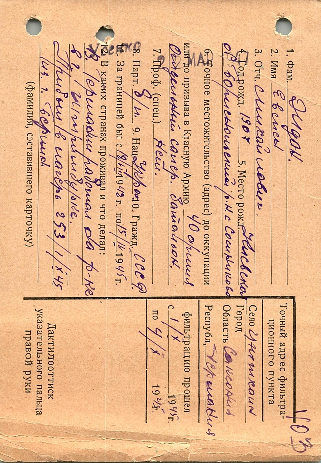 Военнопленные, трофейные карточки. Киевская обл.