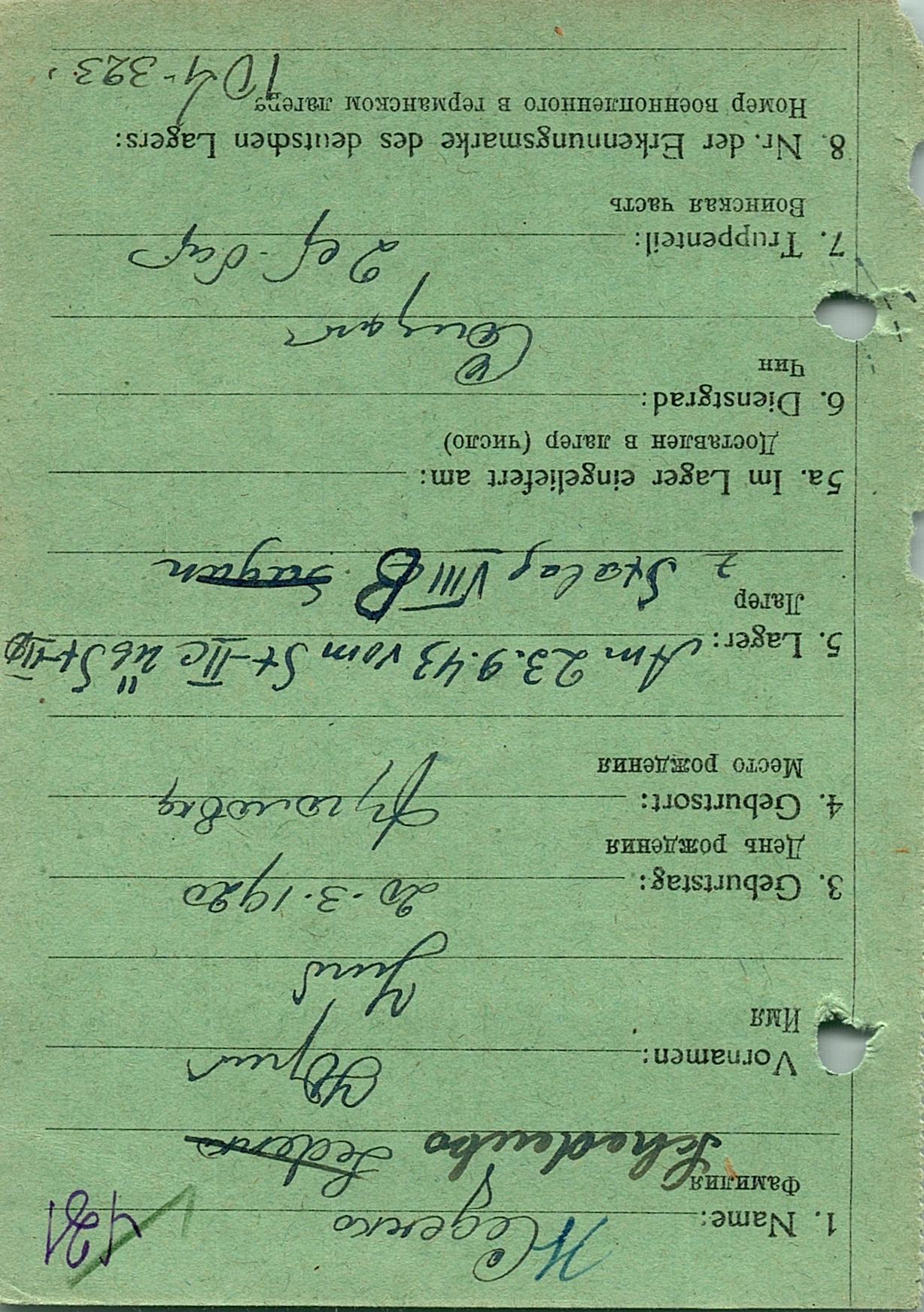 Военнопленные, трофейные карточки. Киевская обл.