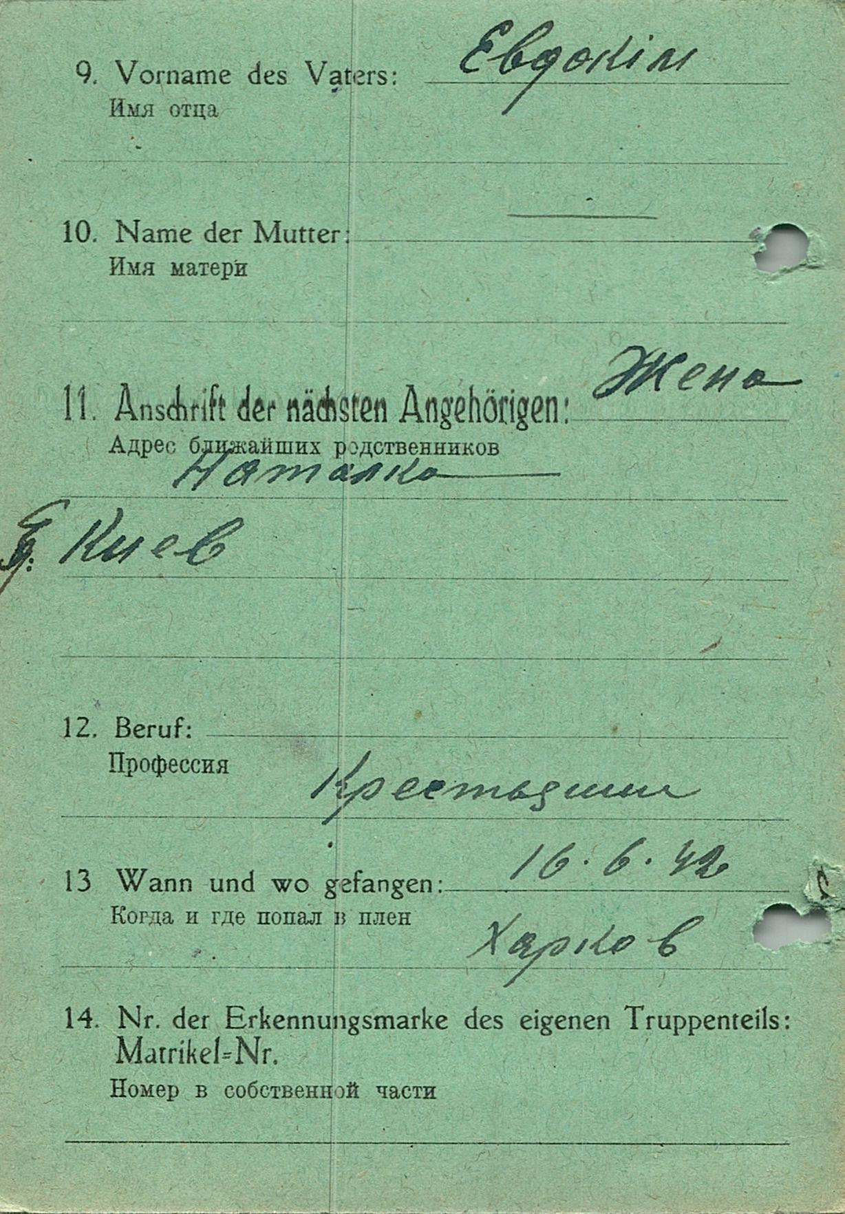 Военнопленные, трофейные карточки. Киевская обл.