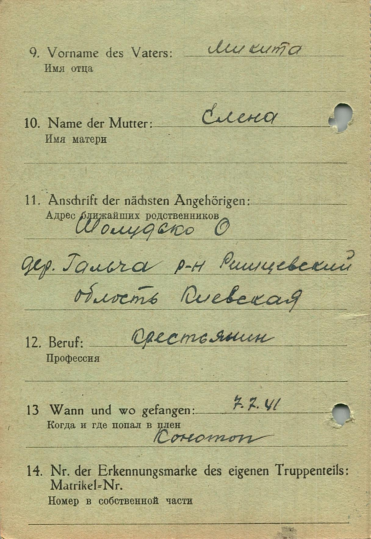 Военнопленные, трофейные карточки. Киевская обл.