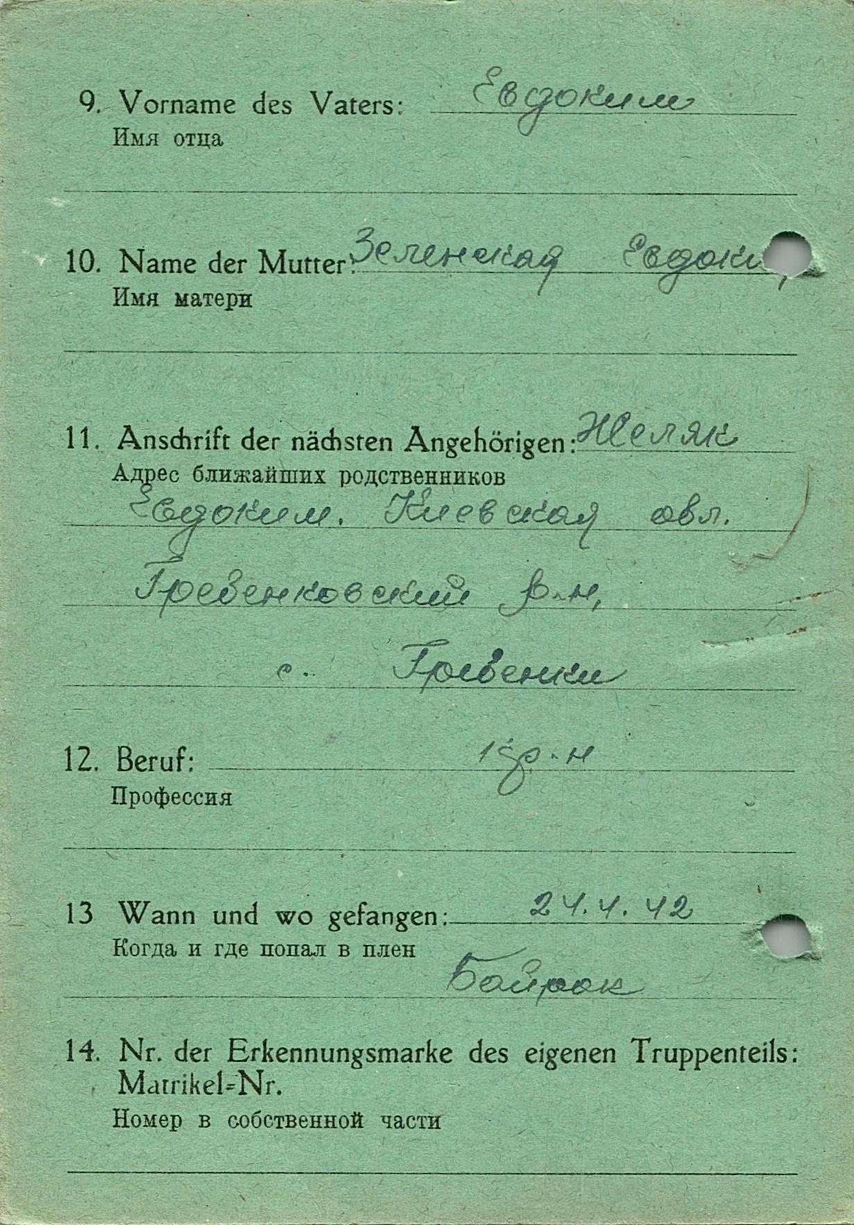 Военнопленные, трофейные карточки. Киевская обл.
