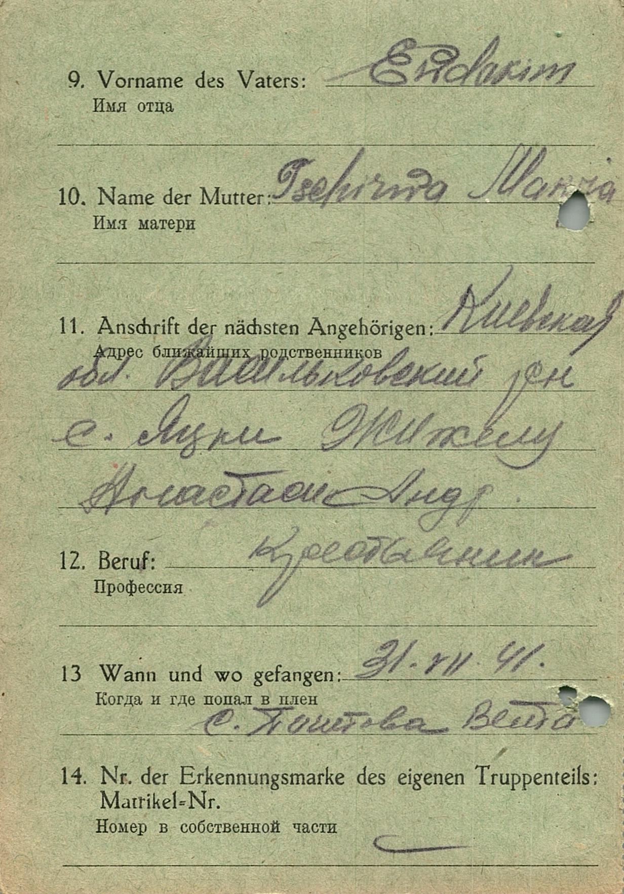Военнопленные, трофейные карточки. Киевская обл.