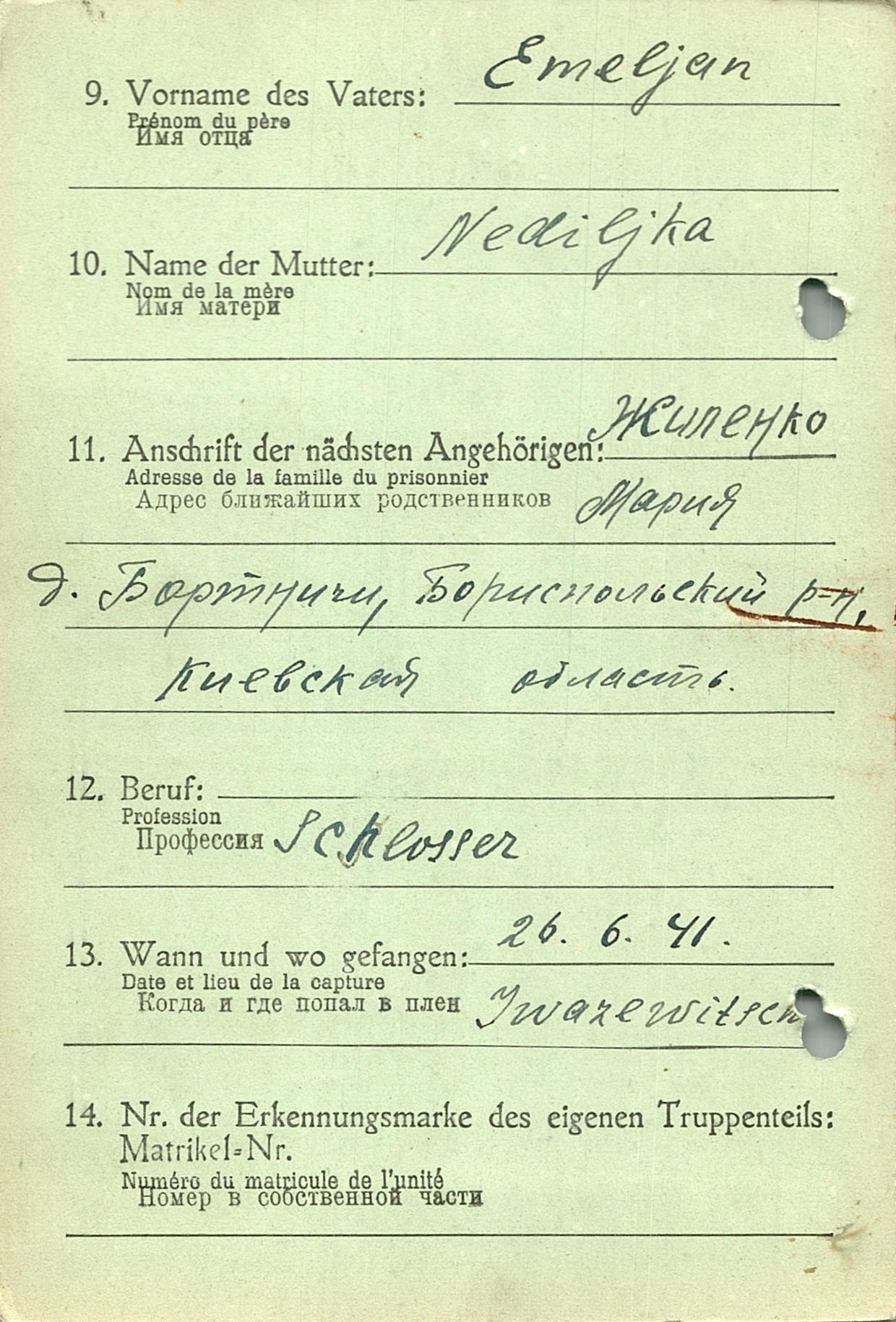 Военнопленные, трофейные карточки. Киевская обл.