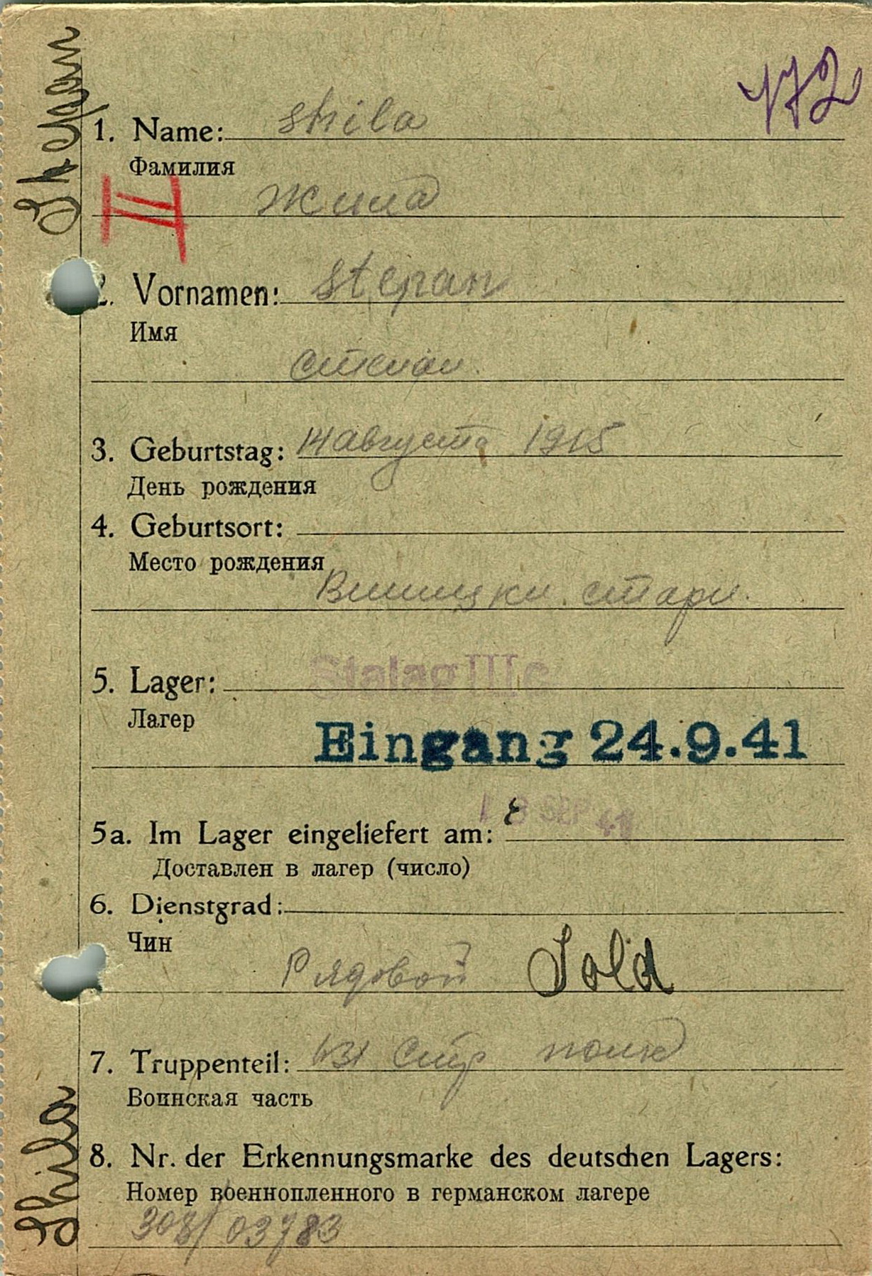 Военнопленные, трофейные карточки. Киевская обл.