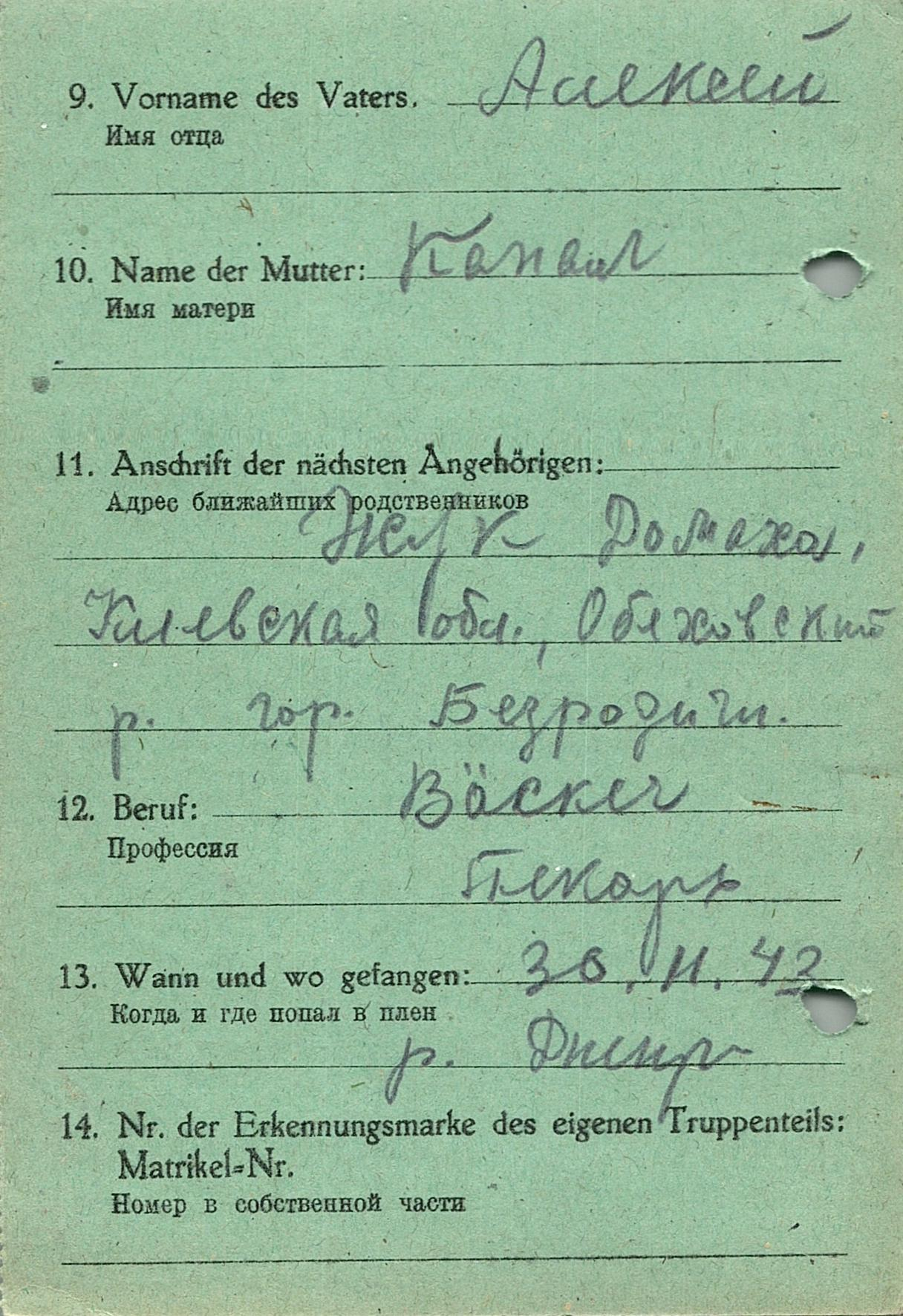 Военнопленные, трофейные карточки. Киевская обл.