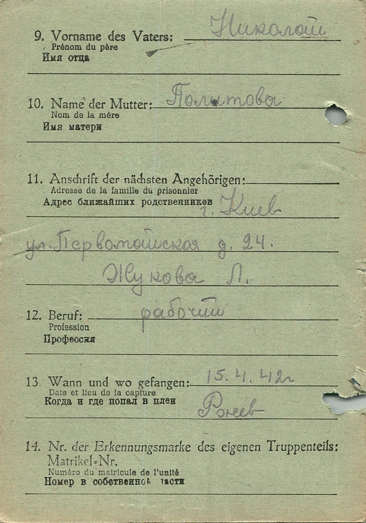 Военнопленные, трофейные карточки. Киевская обл.