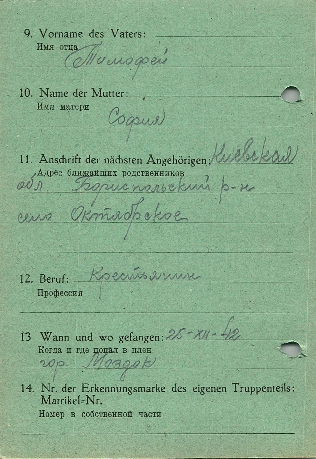 Военнопленные, трофейные карточки. Киевская обл.