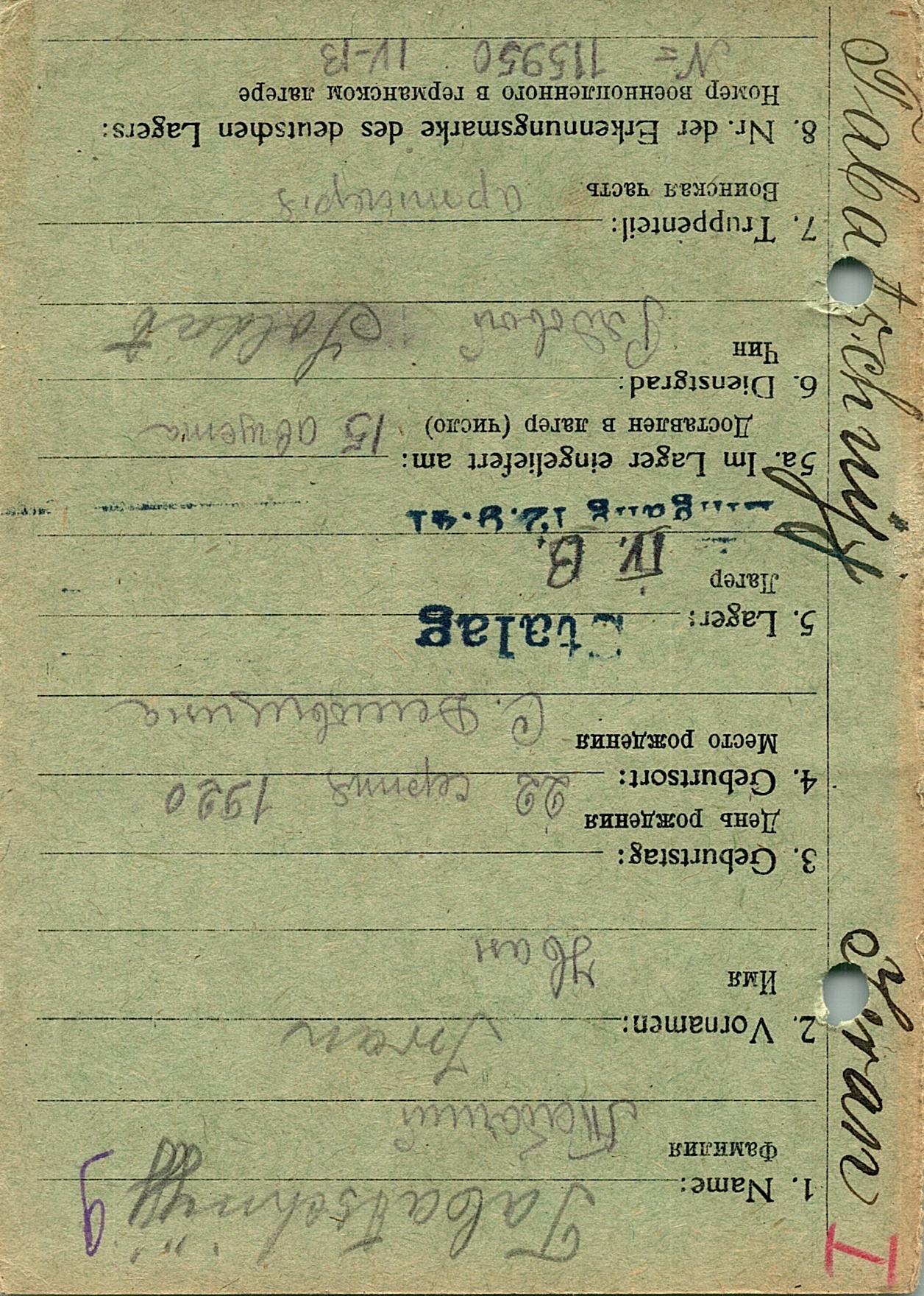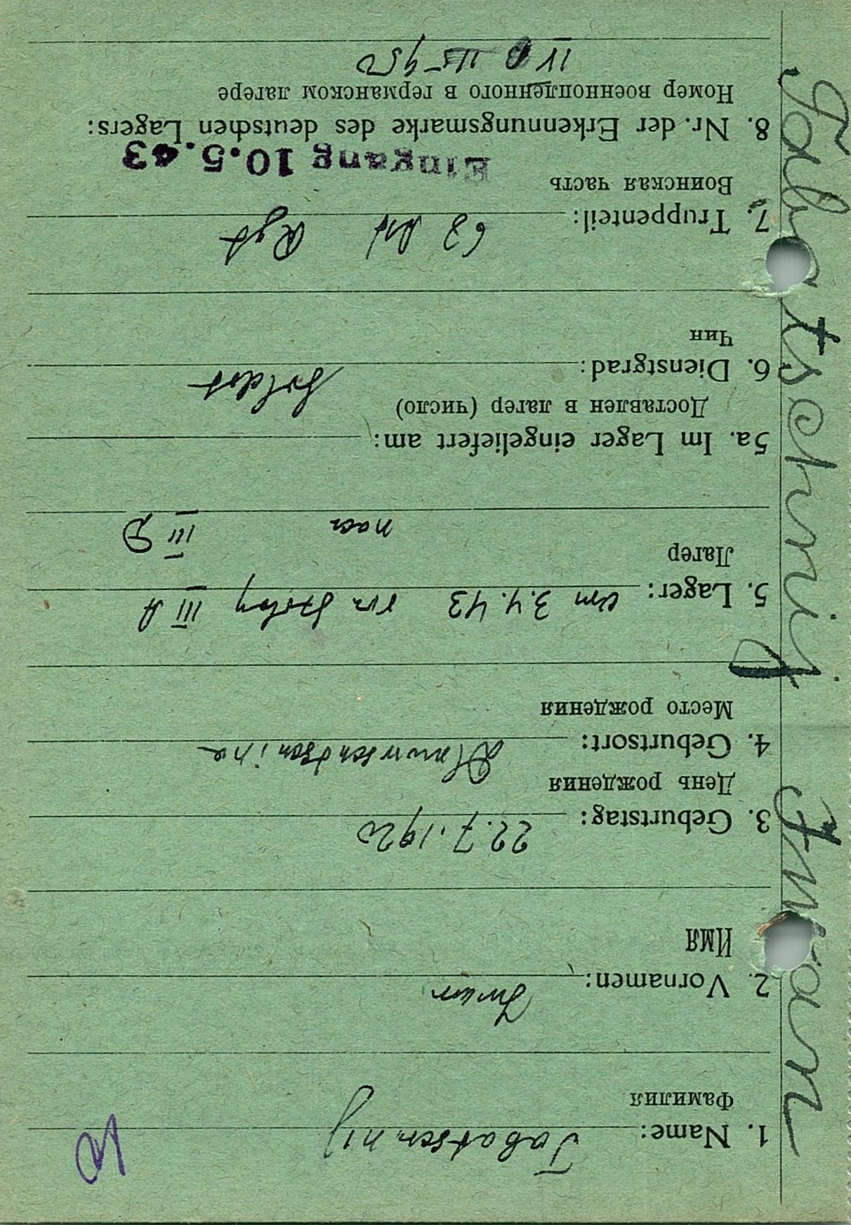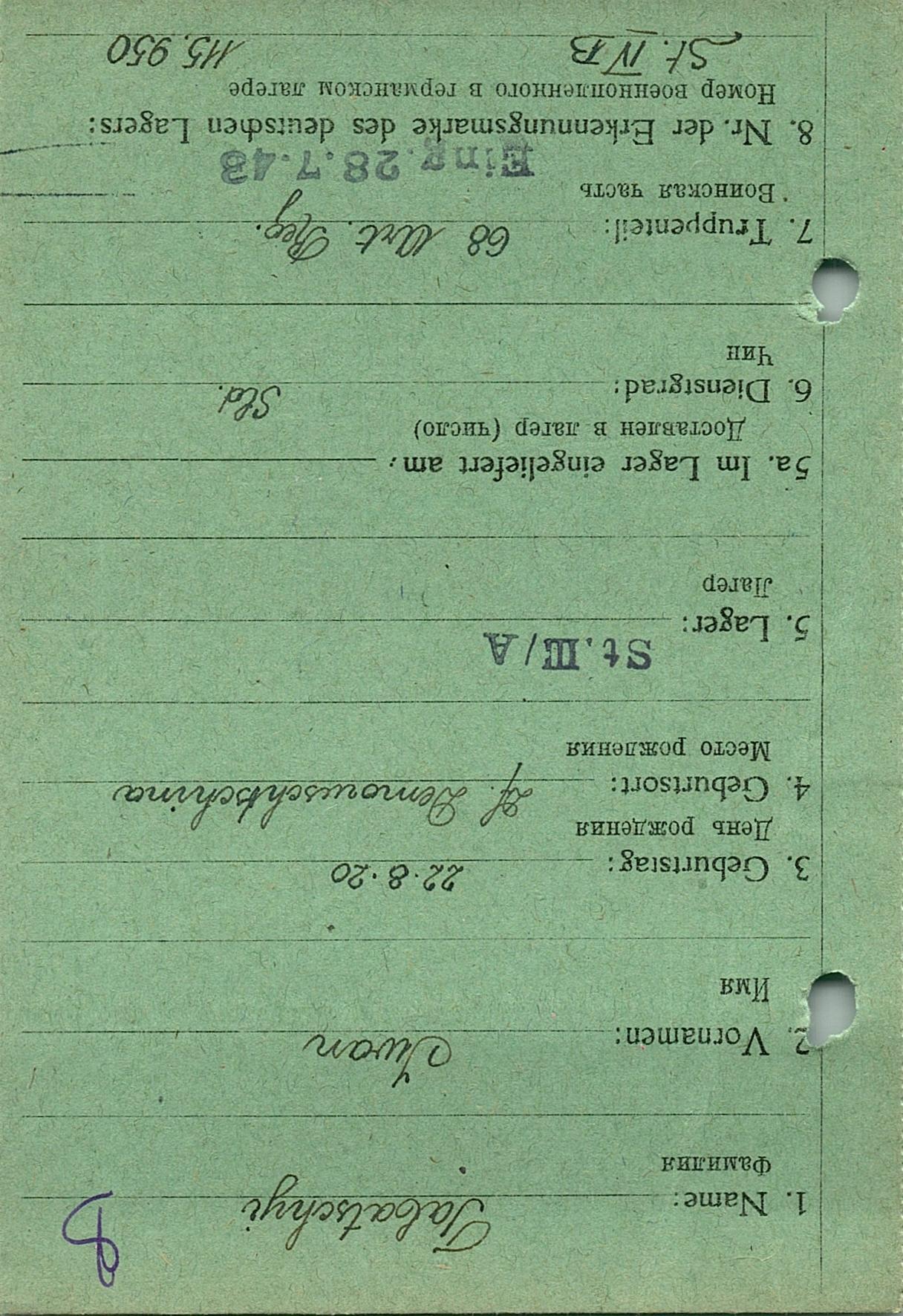 Военнопленные, трофейные карточки. Киевская обл.