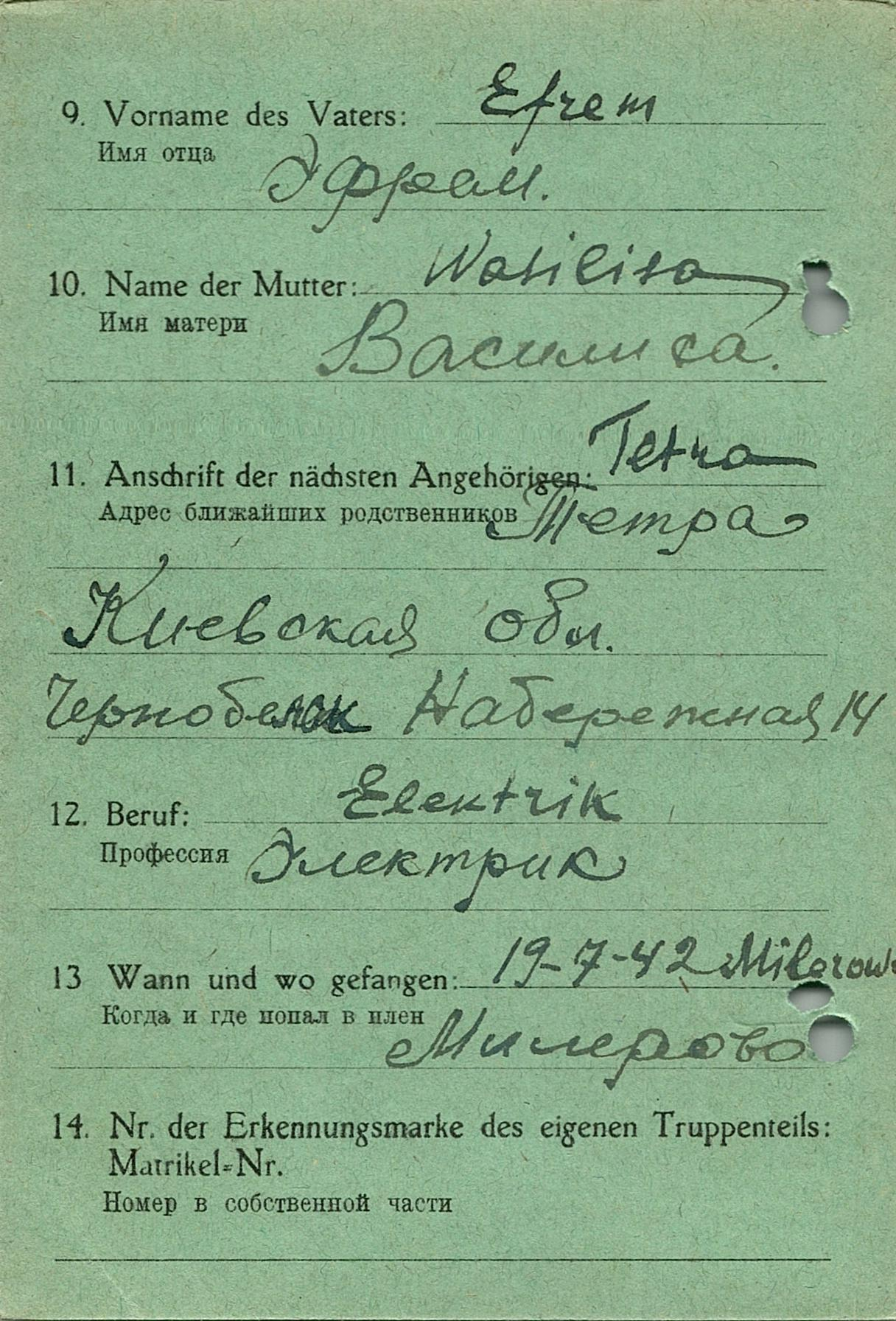 Военнопленные, трофейные карточки. Киевская обл.