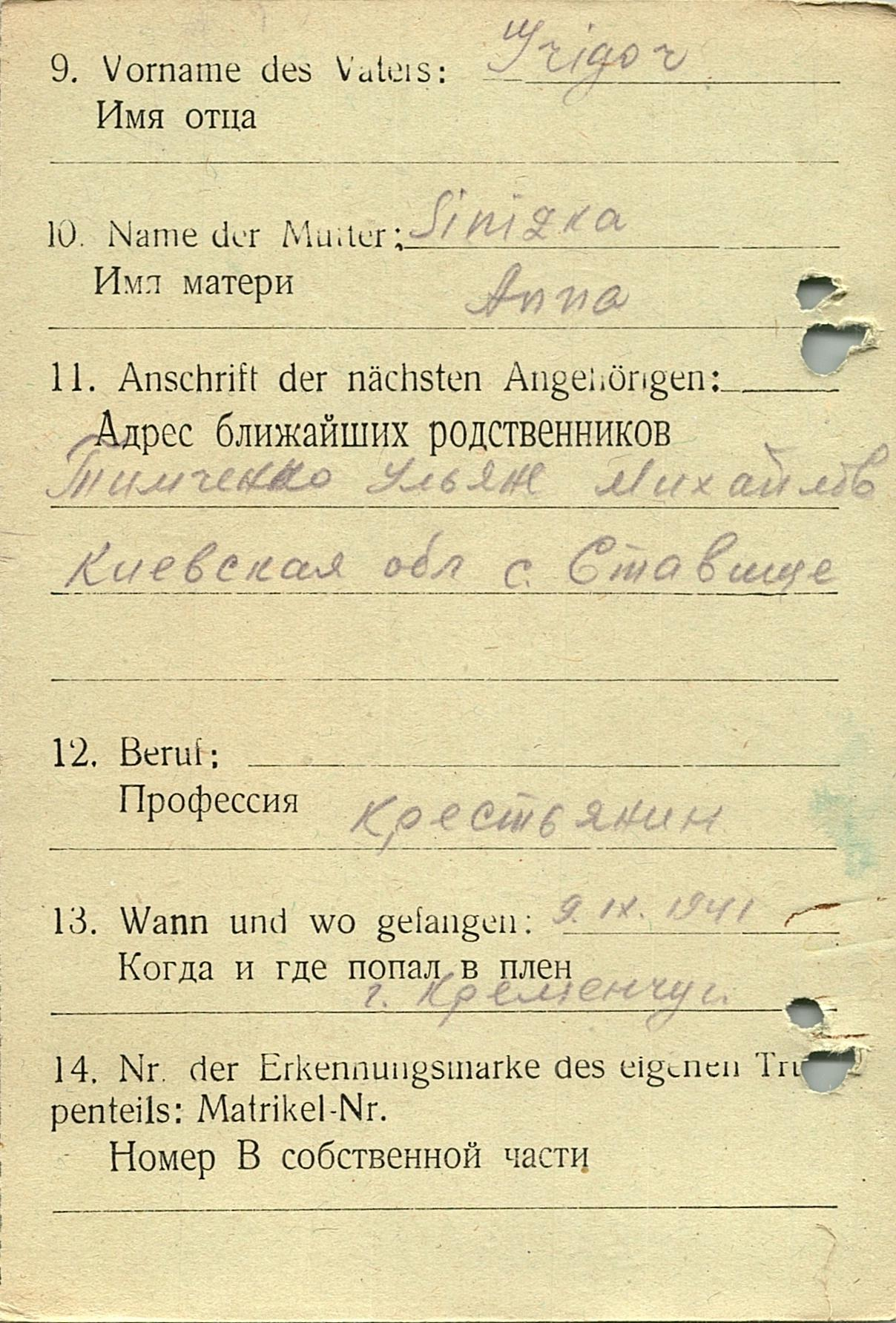 Военнопленные, трофейные карточки. Киевская обл.
