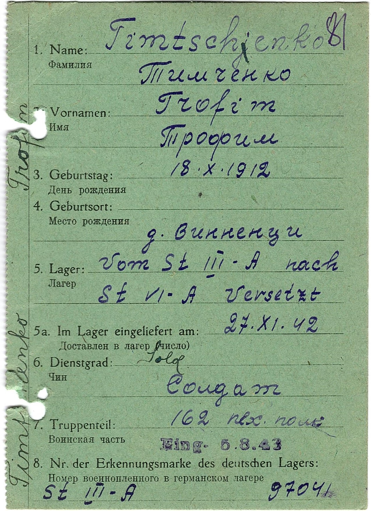 Военнопленные, трофейные карточки. Киевская обл.