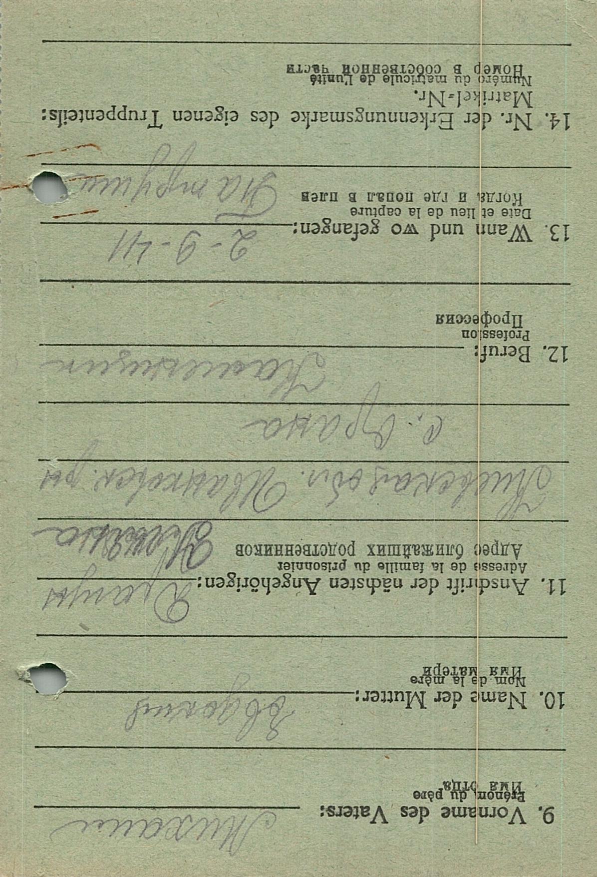 Военнопленные, трофейные карточки. Киевская обл.