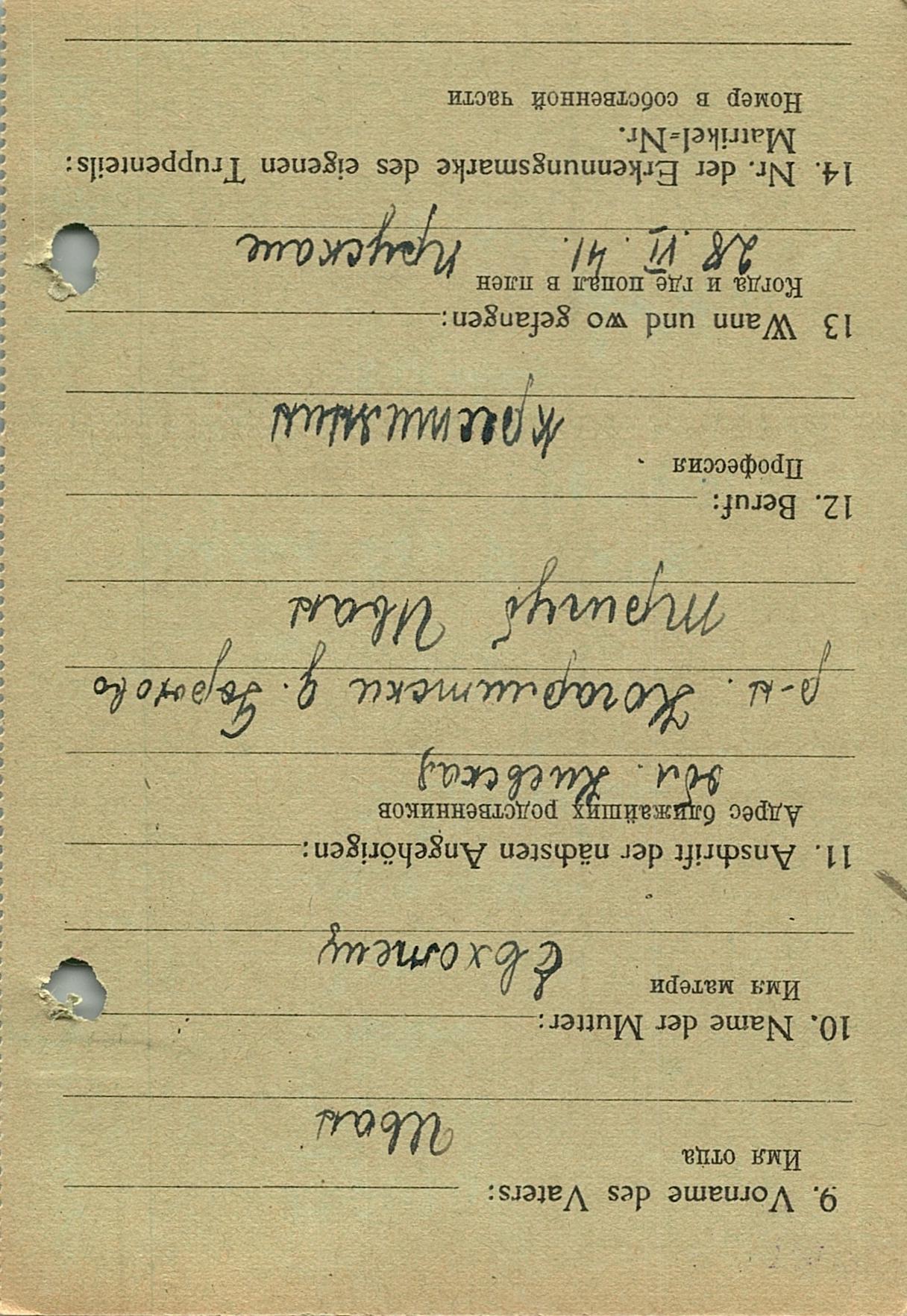 Военнопленные, трофейные карточки. Киевская обл.
