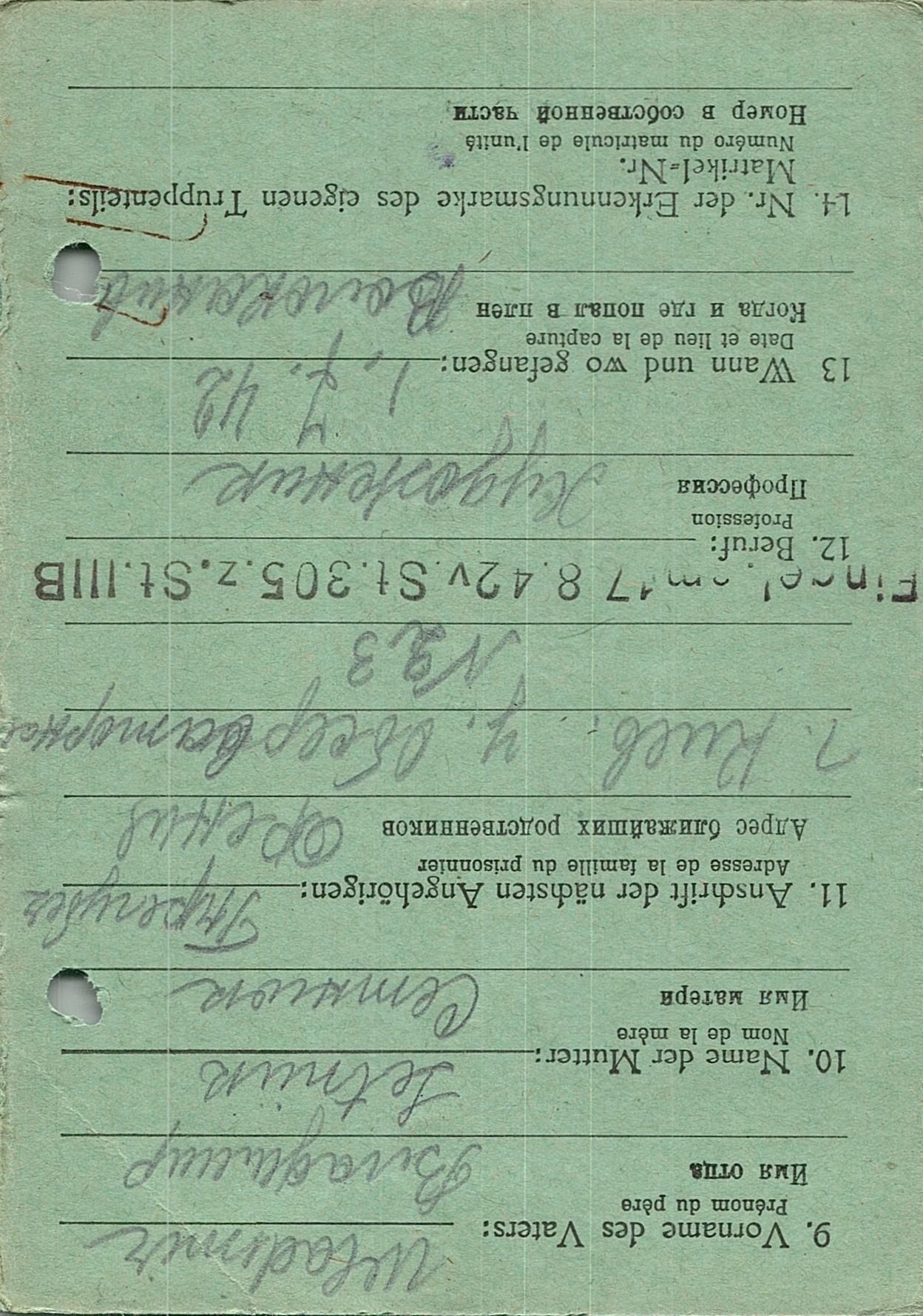 Военнопленные, трофейные карточки. Киевская обл.