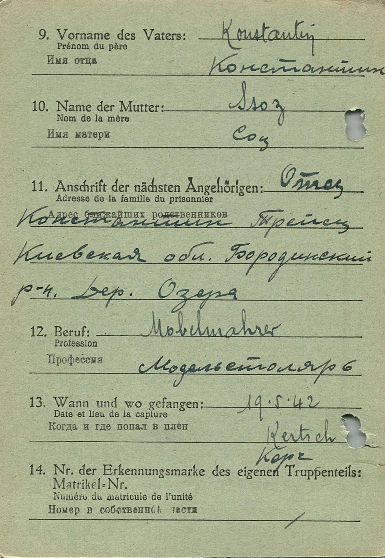 Военнопленные, трофейные карточки. Киевская обл.