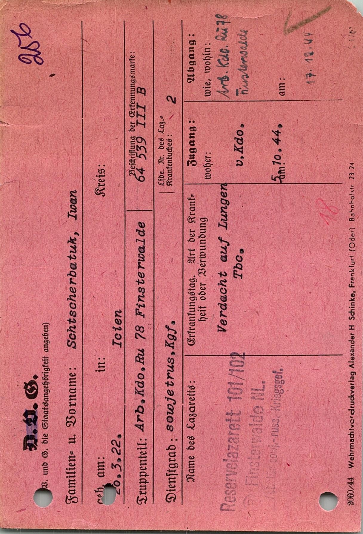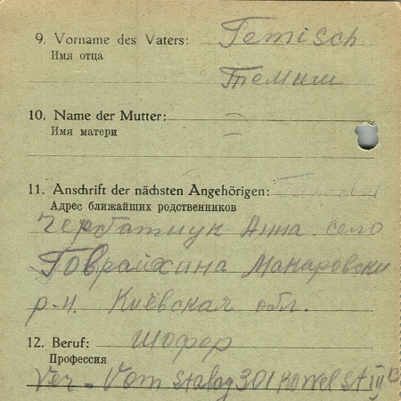 Военнопленные, трофейные карточки. Киевская обл.