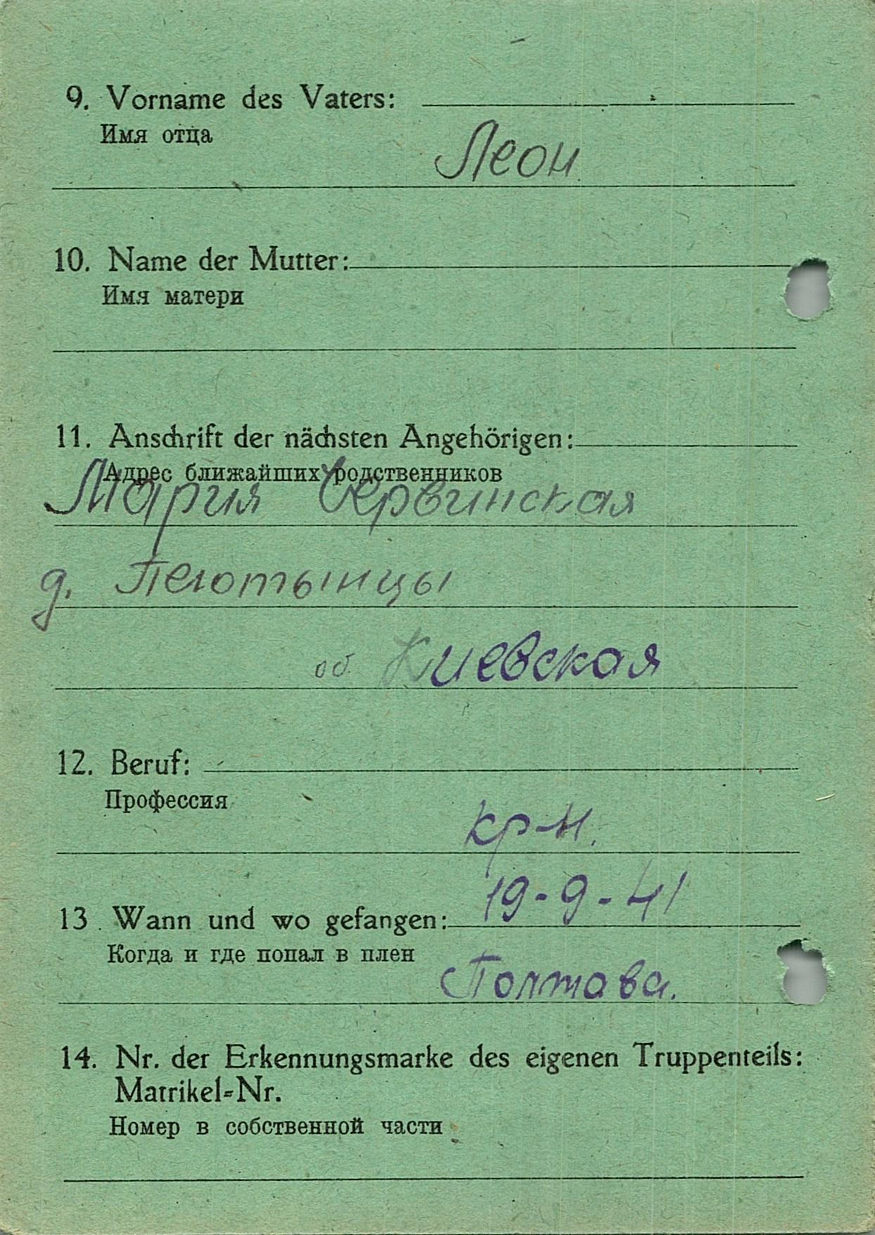 Военнопленные, трофейные карточки. Киевская обл.