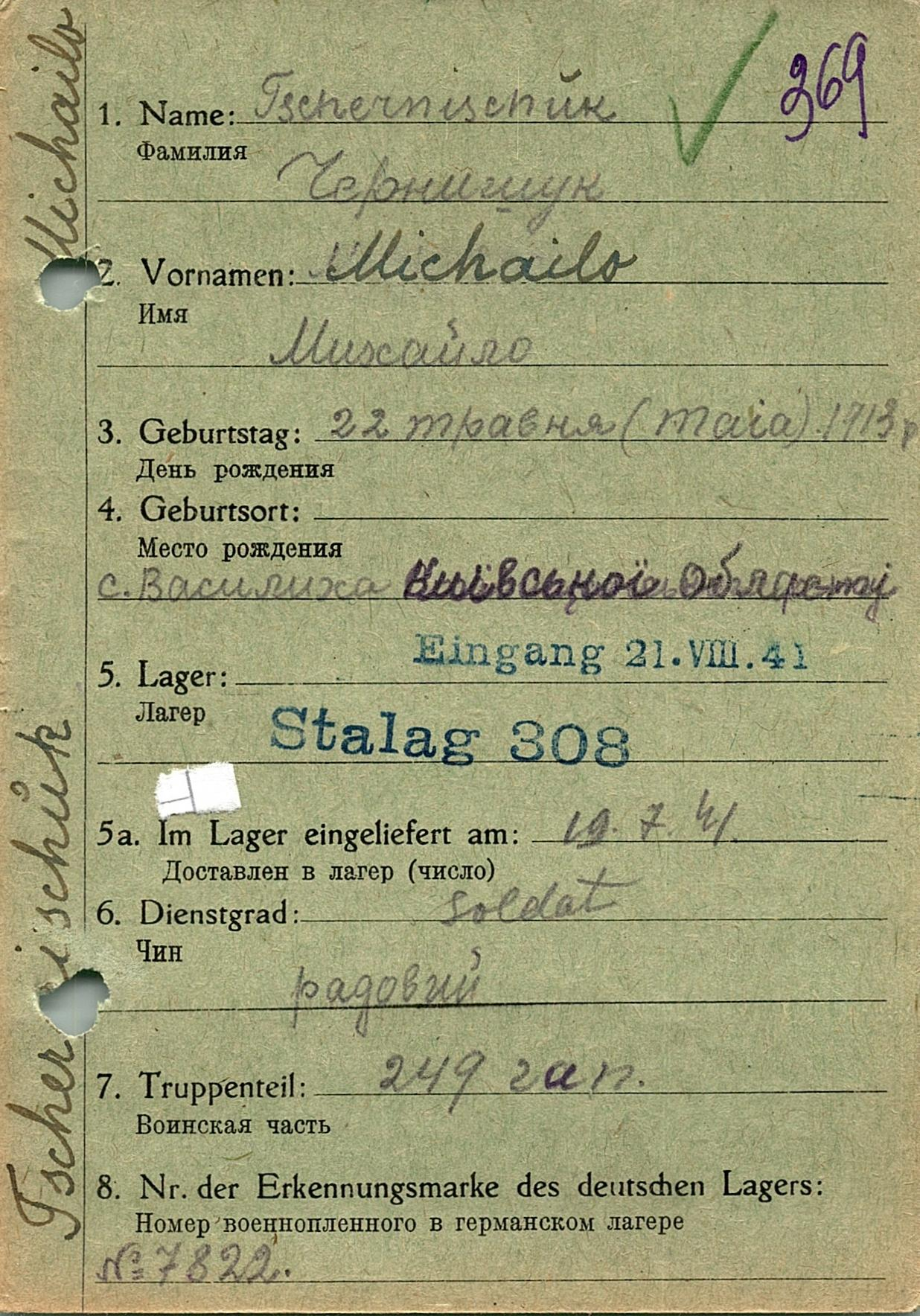 Военнопленные, трофейные карточки. Киевская обл.