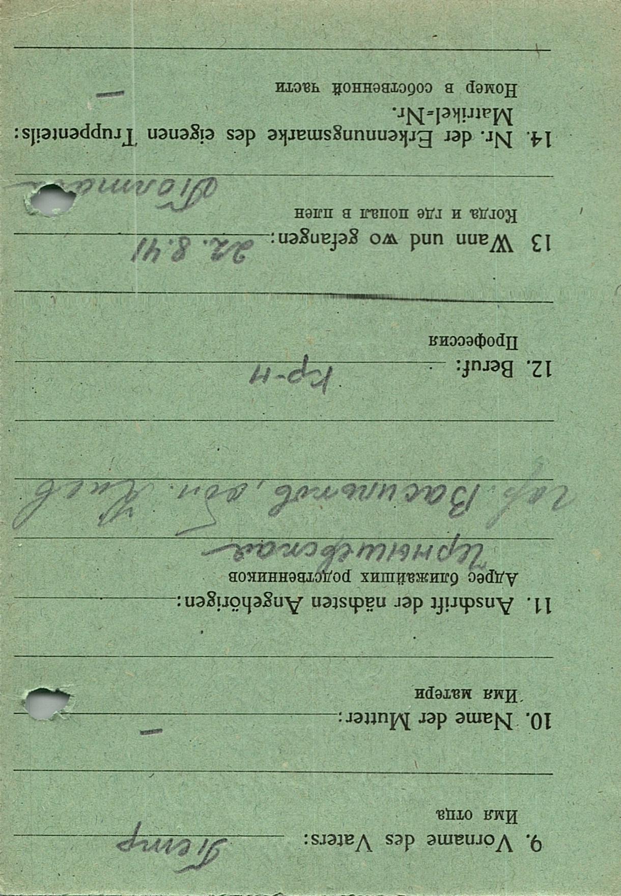 Военнопленные, трофейные карточки. Киевская обл.