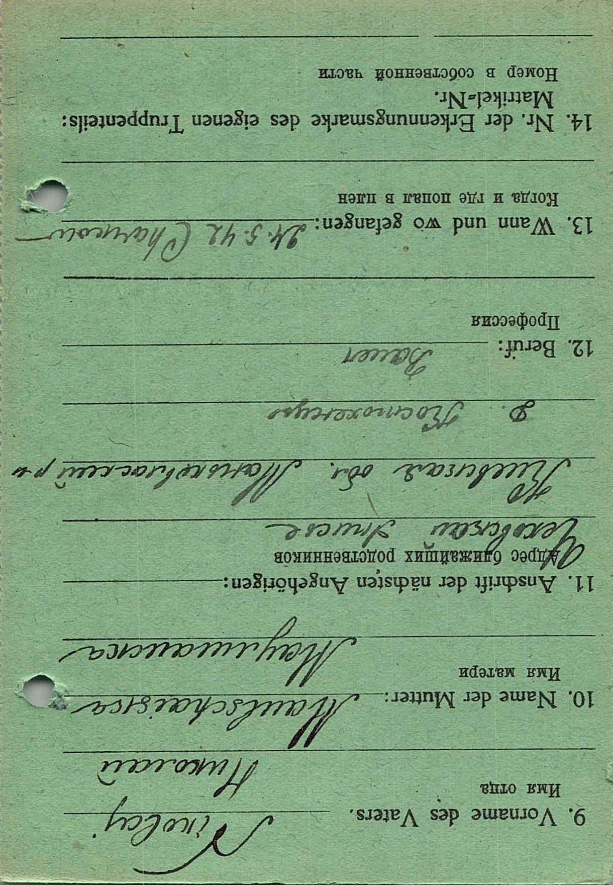 Военнопленные, трофейные карточки. Киевская обл.