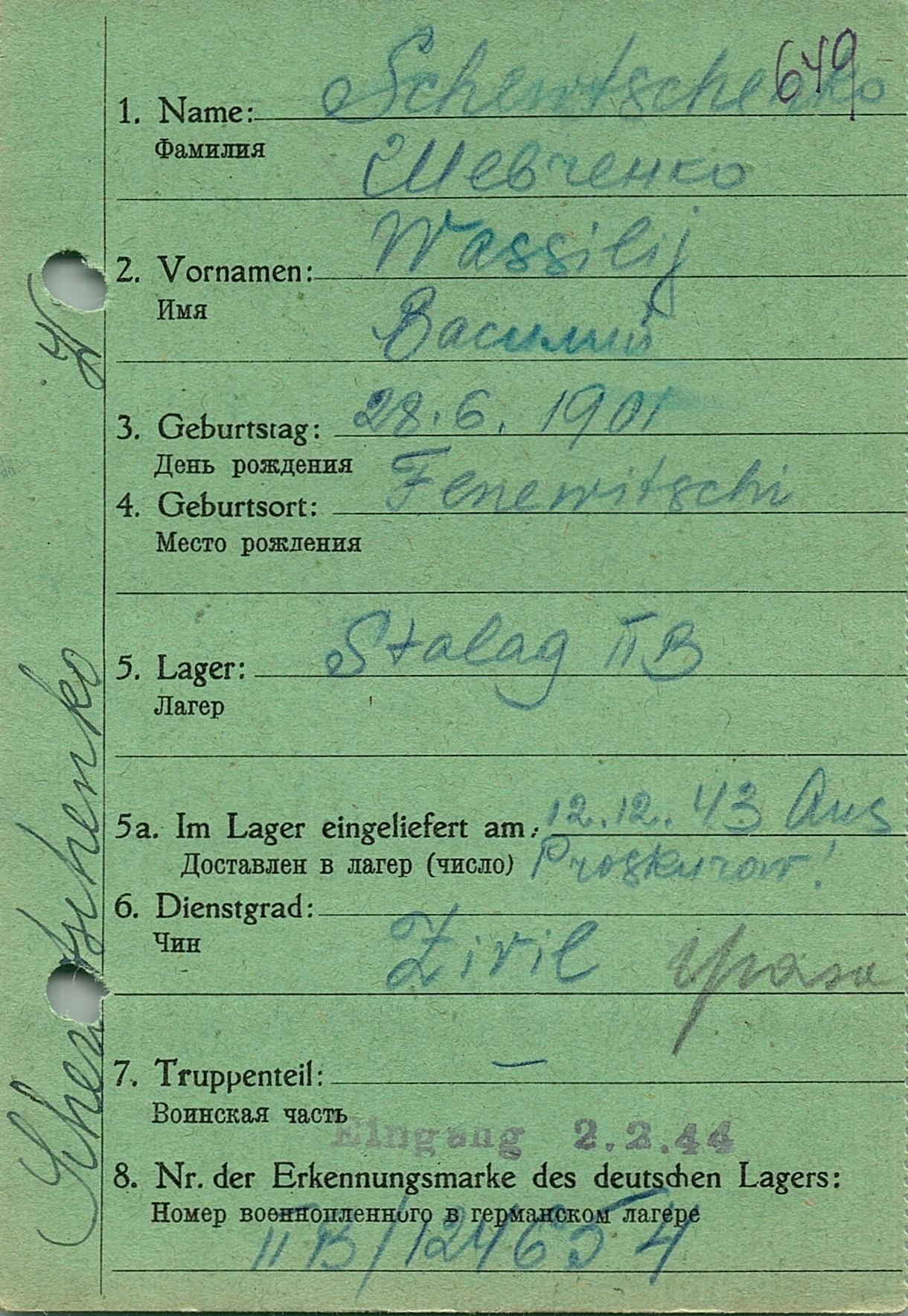 Военнопленные, трофейные карточки. Киевская обл.