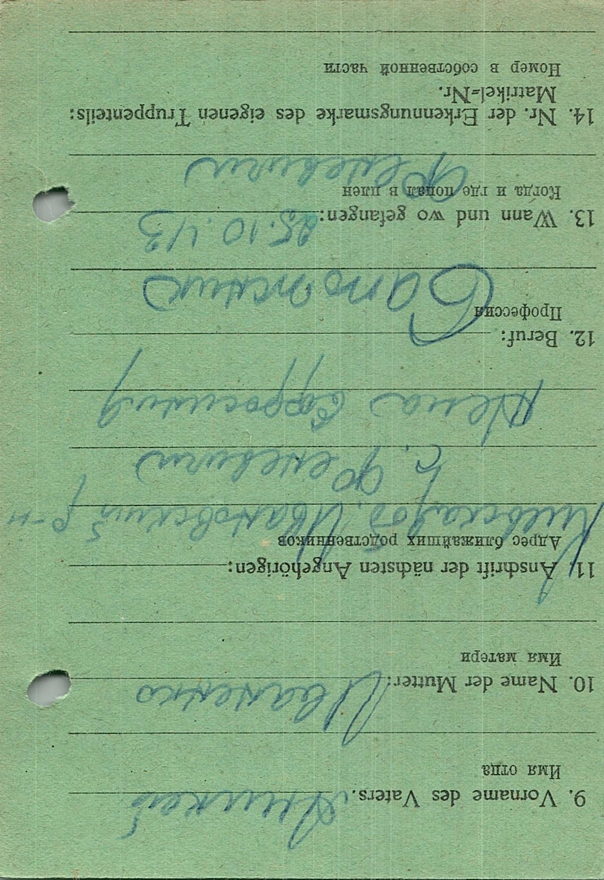 Военнопленные, трофейные карточки. Киевская обл.