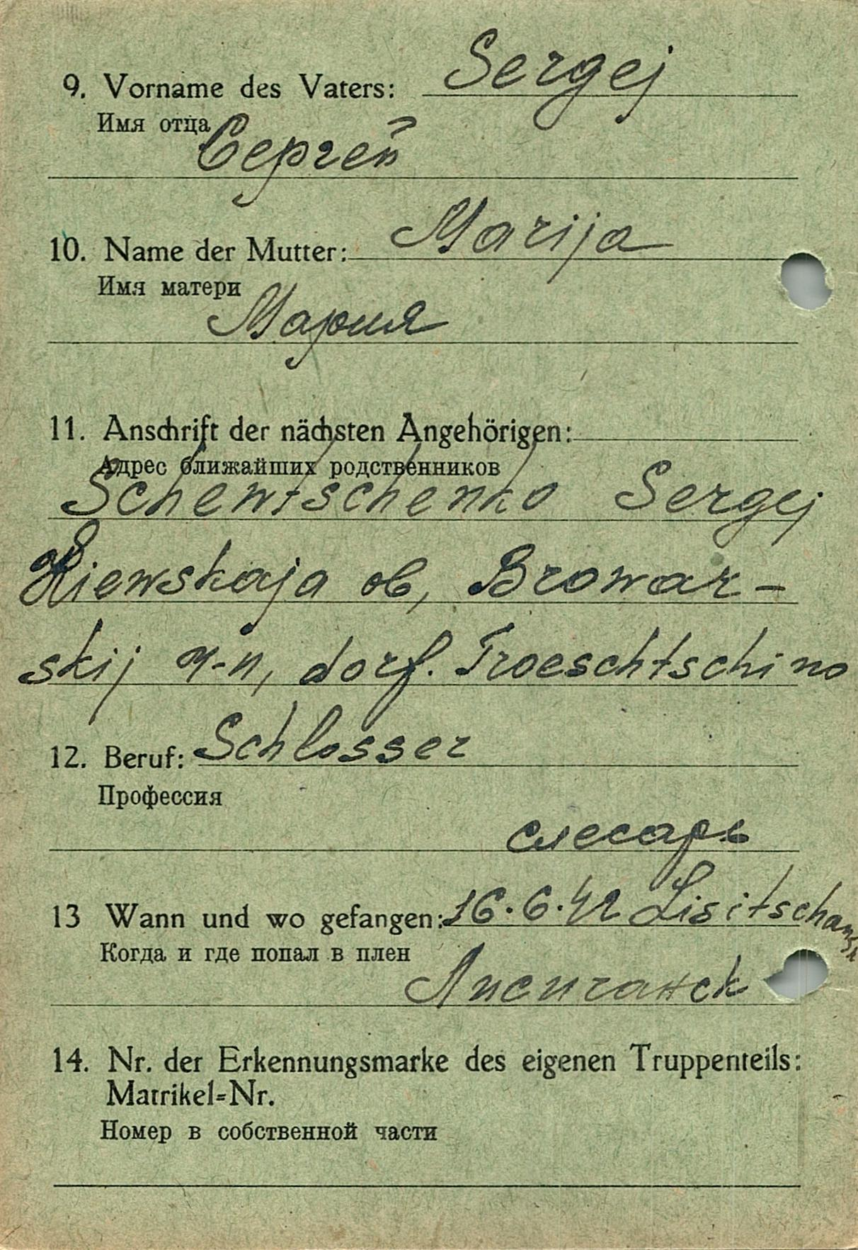 Военнопленные, трофейные карточки. Киевская обл.