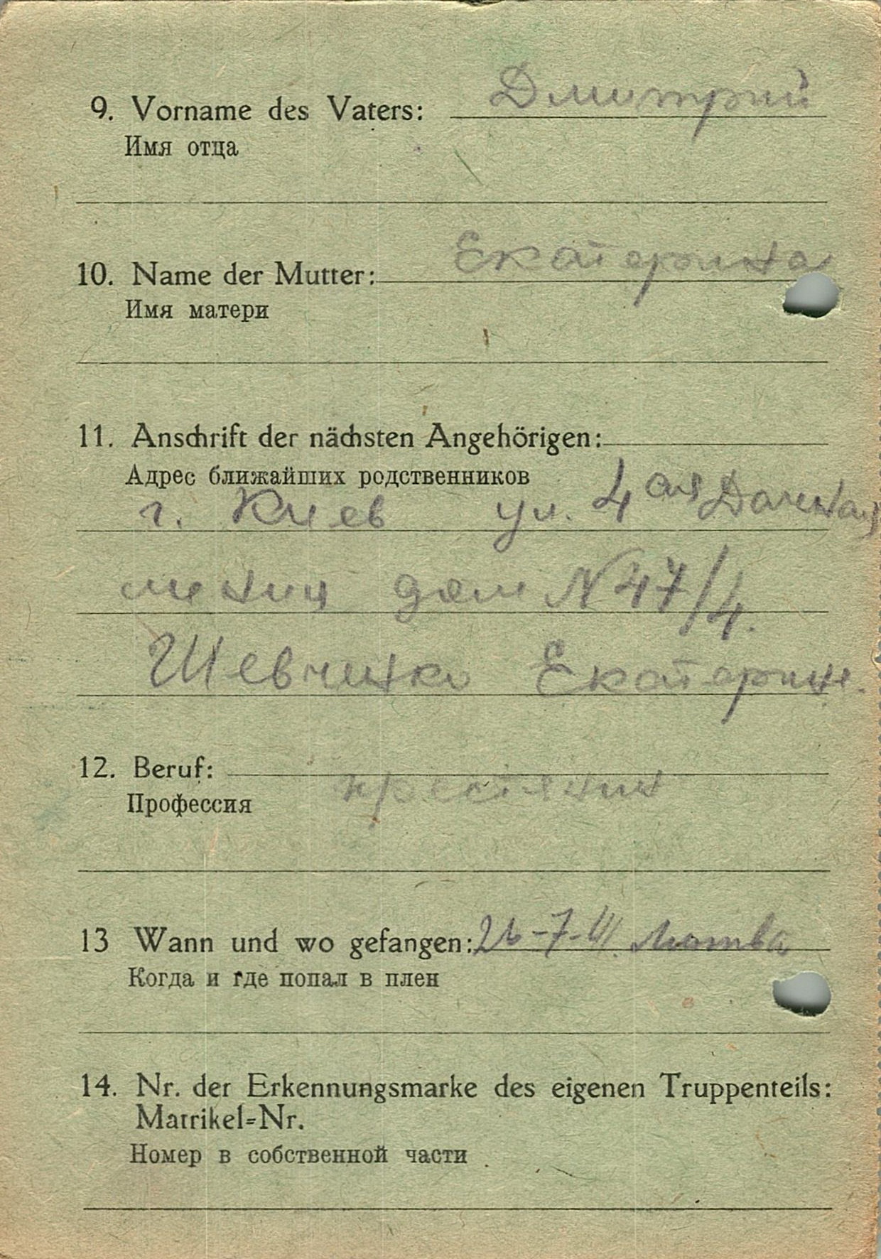 Военнопленные, трофейные карточки. Киевская обл.