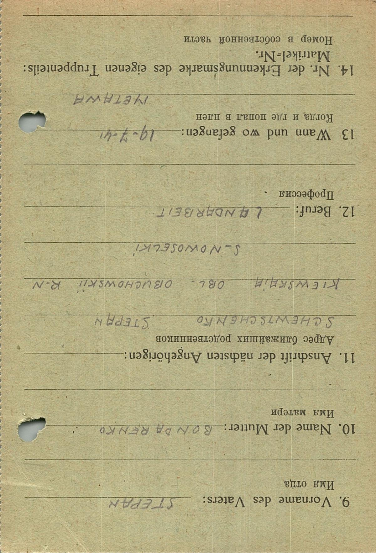 Военнопленные, трофейные карточки. Киевская обл.