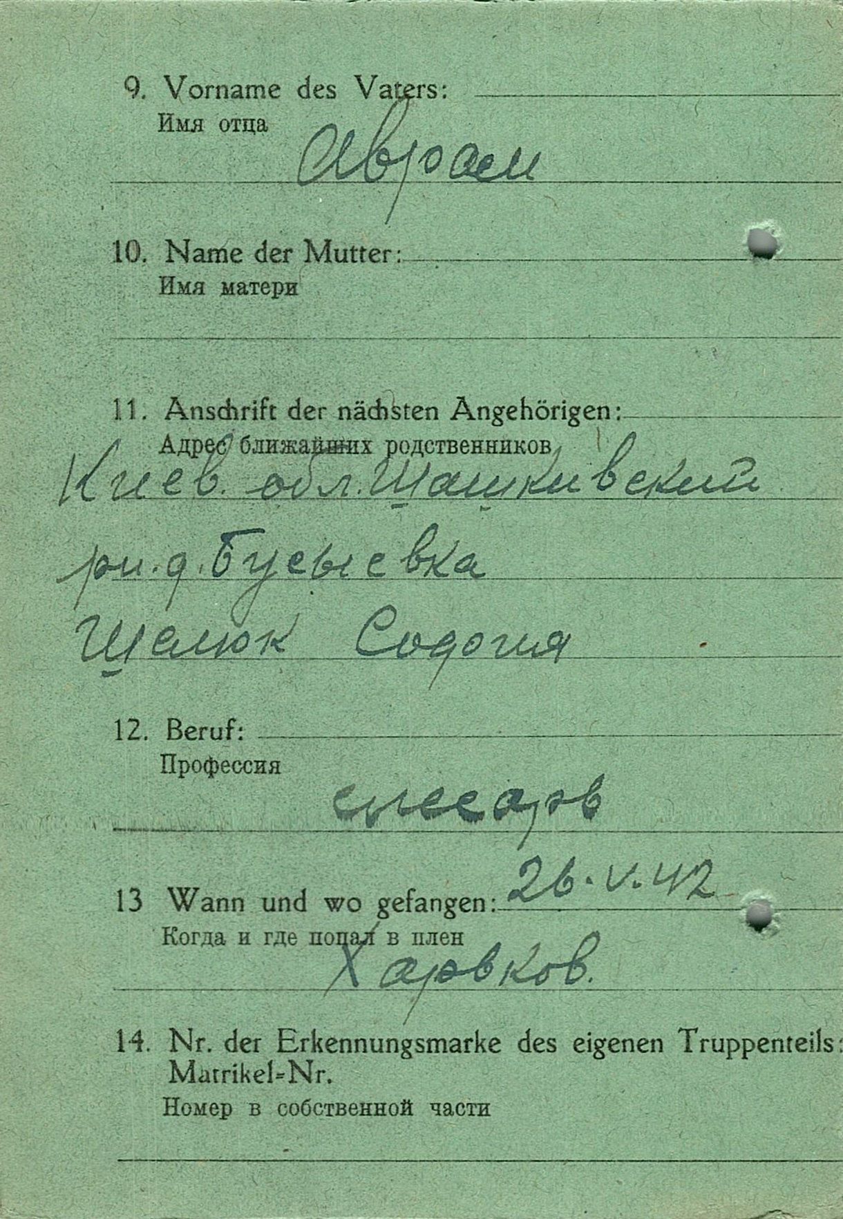 Военнопленные, трофейные карточки. Киевская обл.