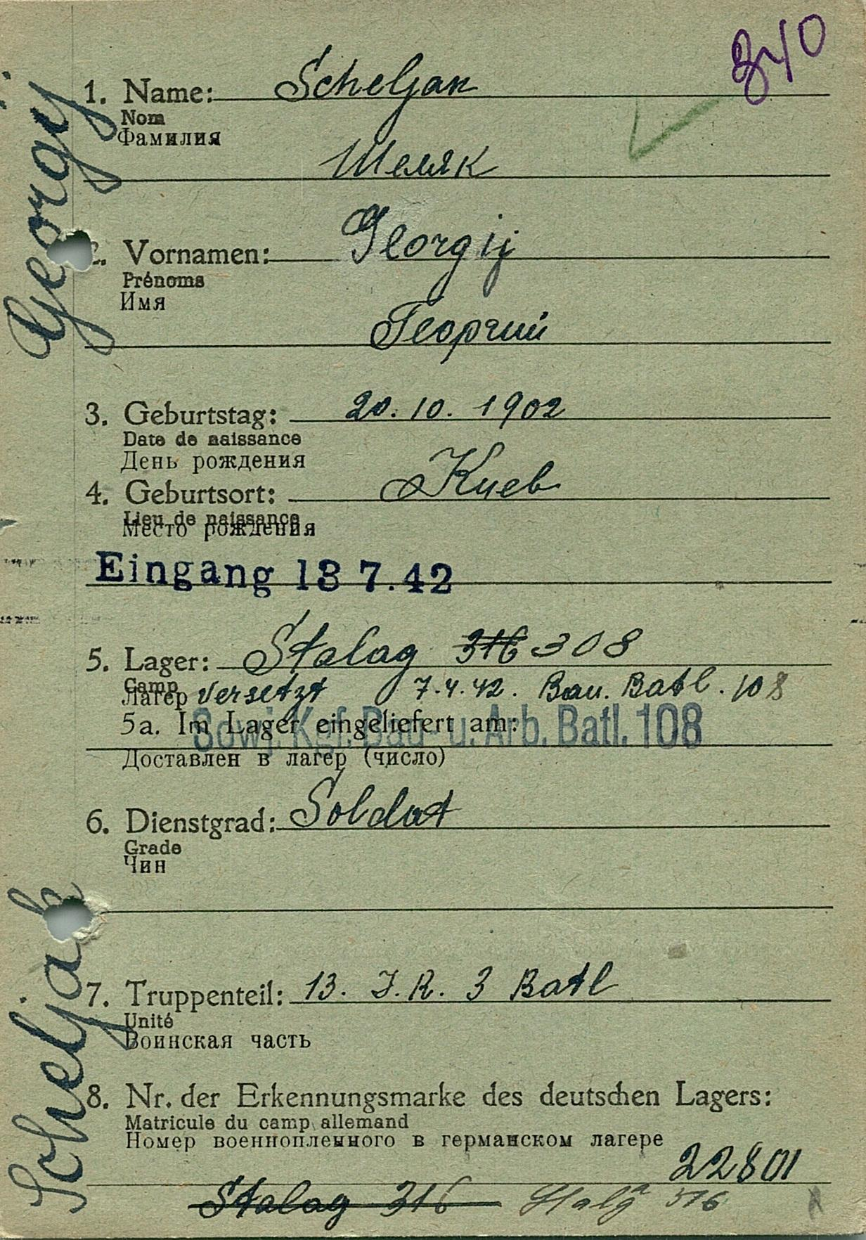 Военнопленные, трофейные карточки. Киевская обл.