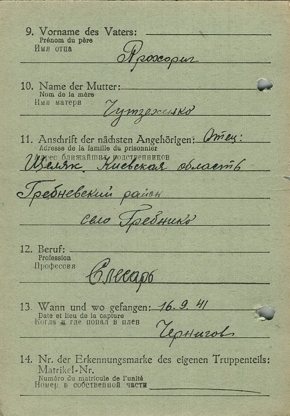 Военнопленные, трофейные карточки. Киевская обл.