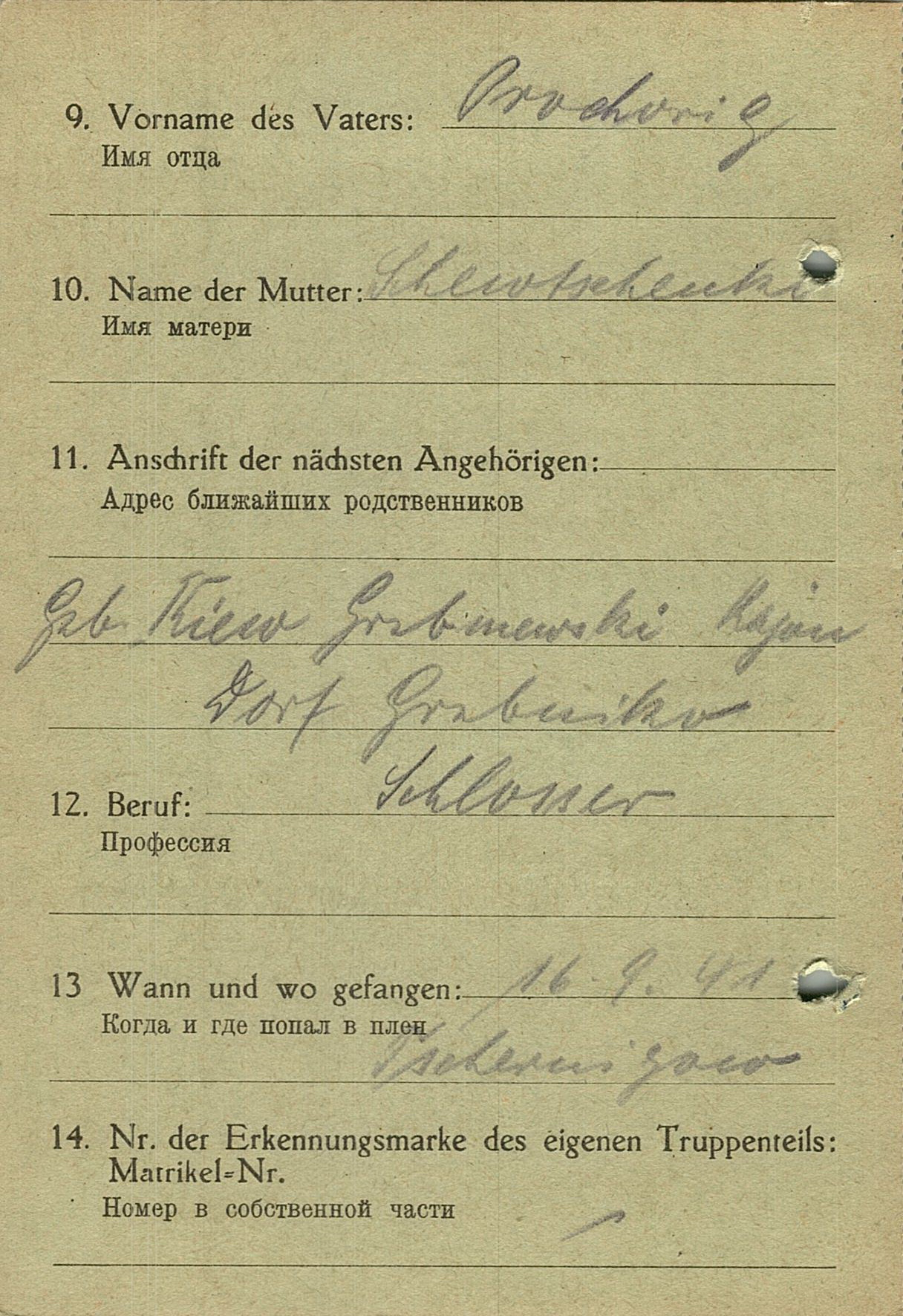 Военнопленные, трофейные карточки. Киевская обл.