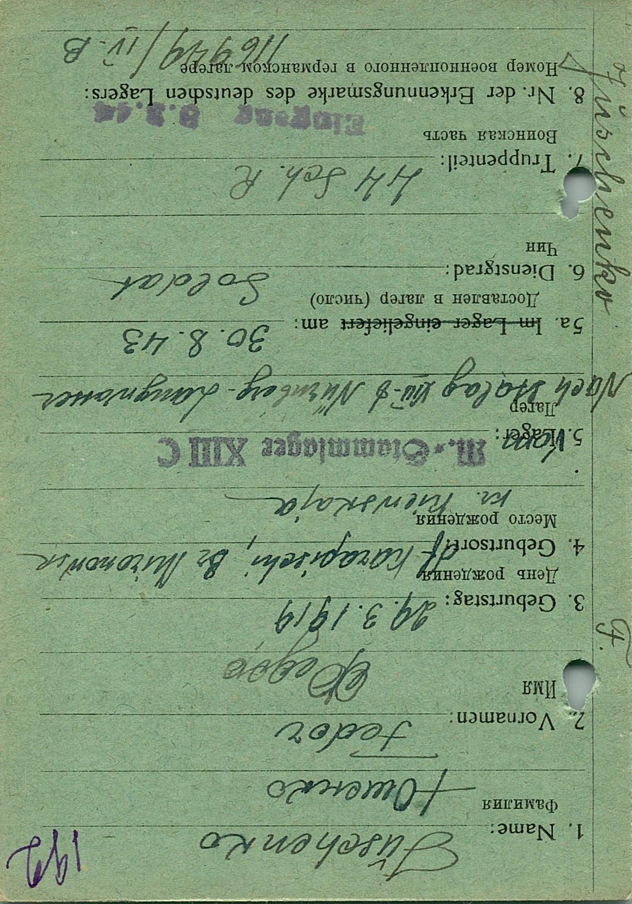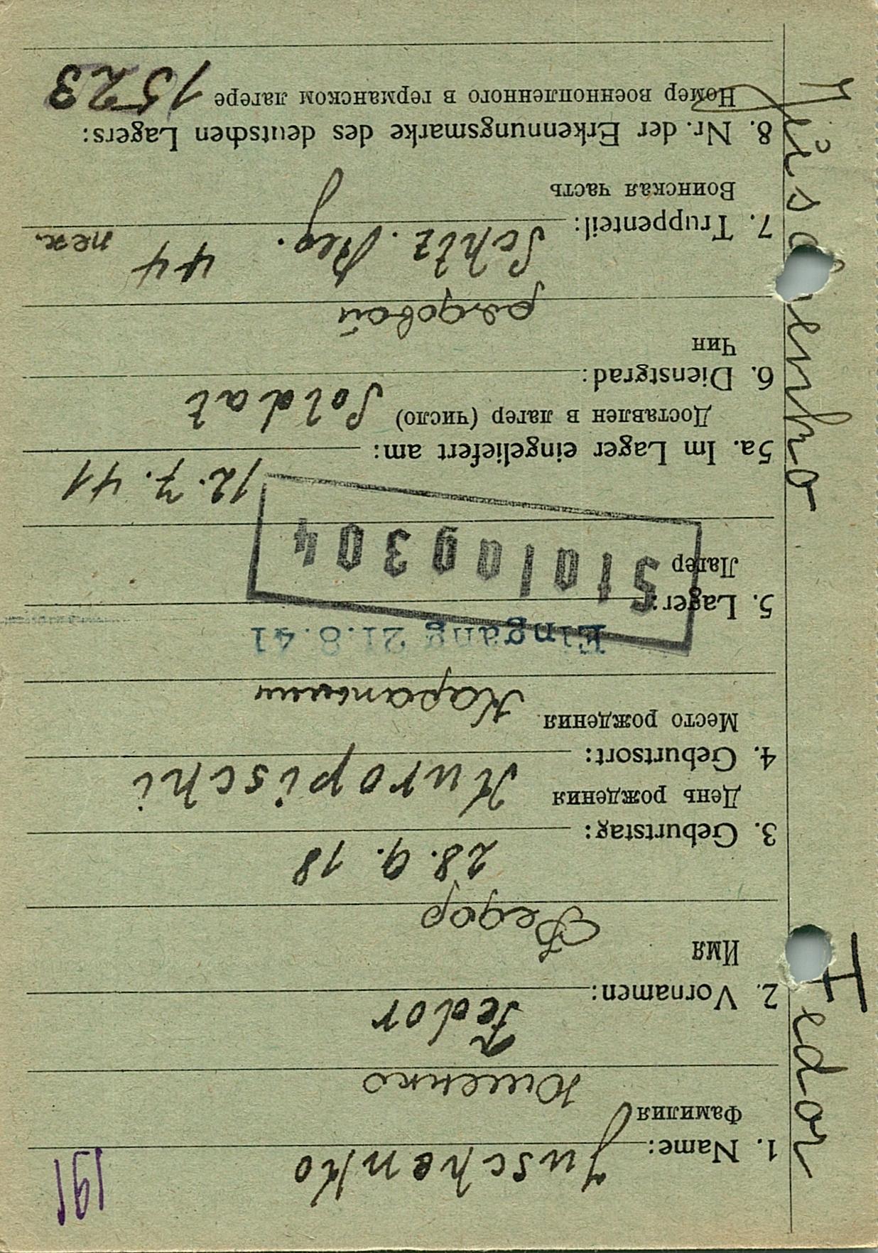 Военнопленные, трофейные карточки. Киевская обл.