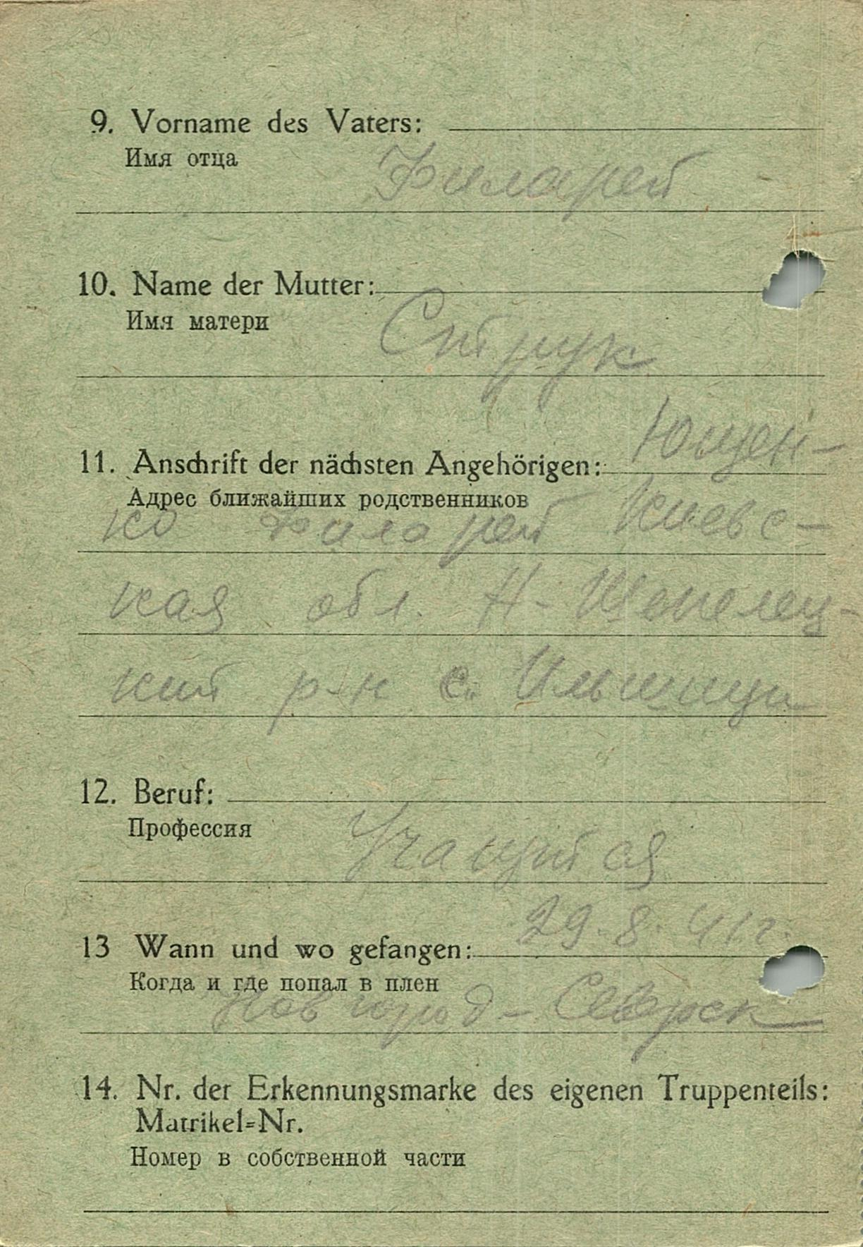 Военнопленные, трофейные карточки. Киевская обл.