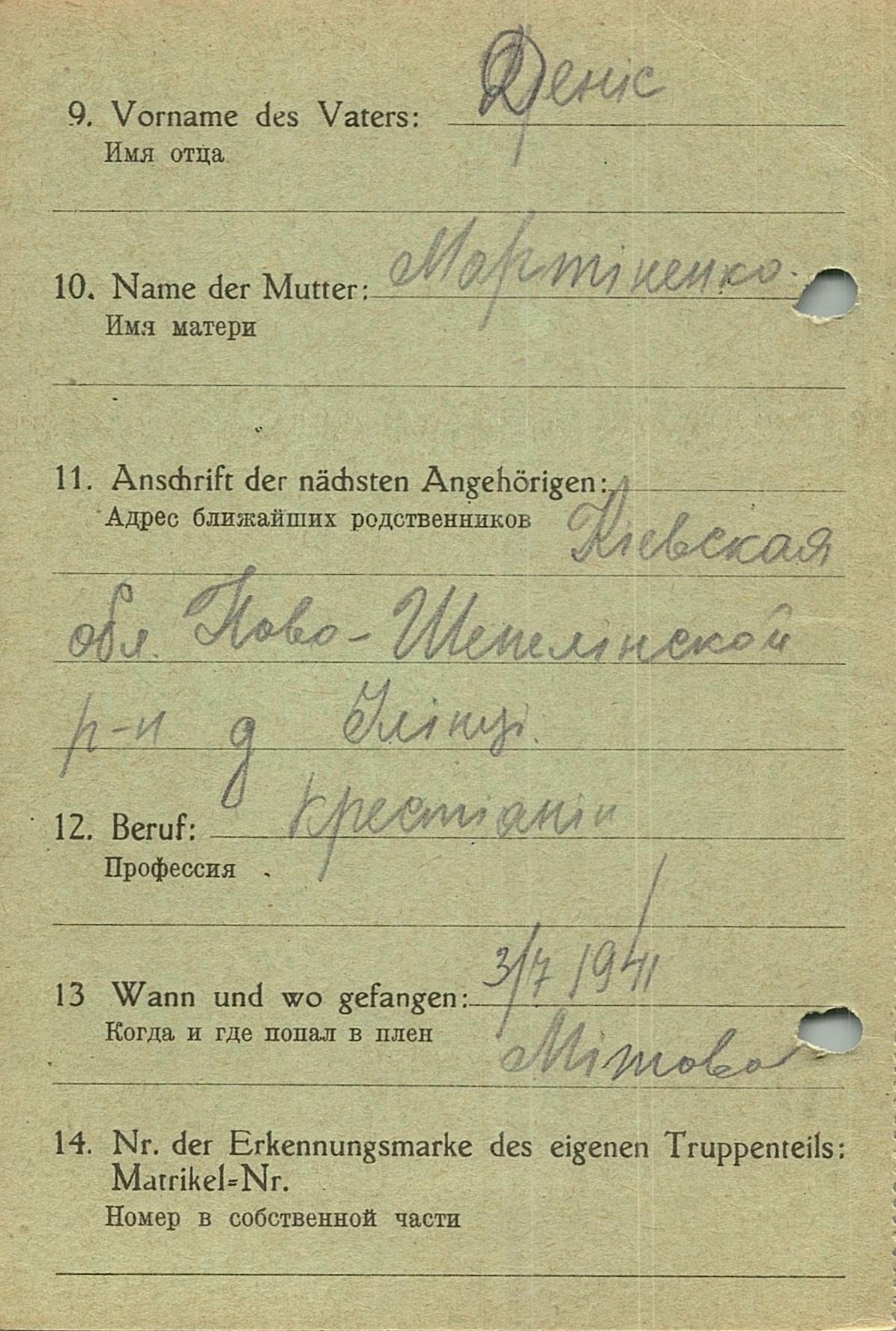 Военнопленные, трофейные карточки. Киевская обл.