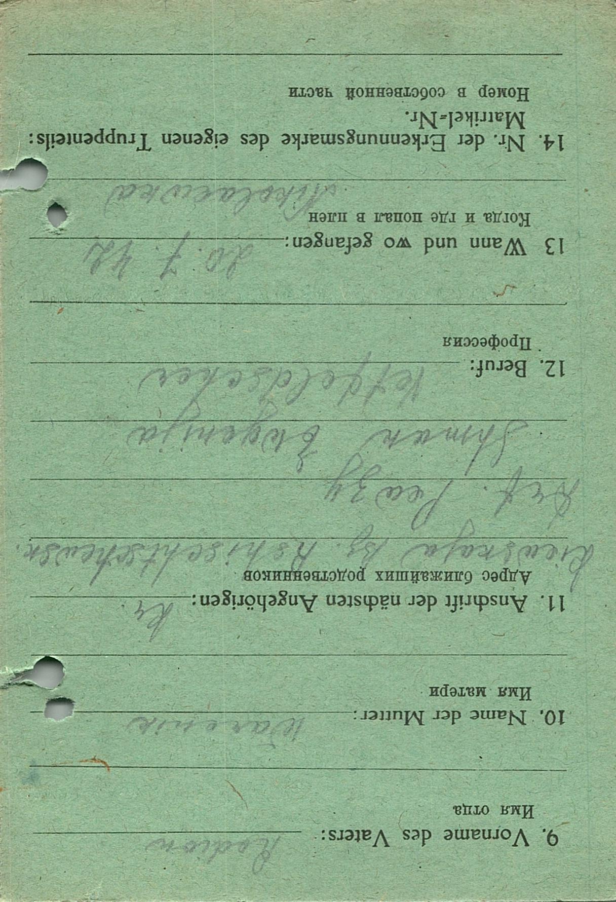 Военнопленные, трофейные карточки. Киевская обл.