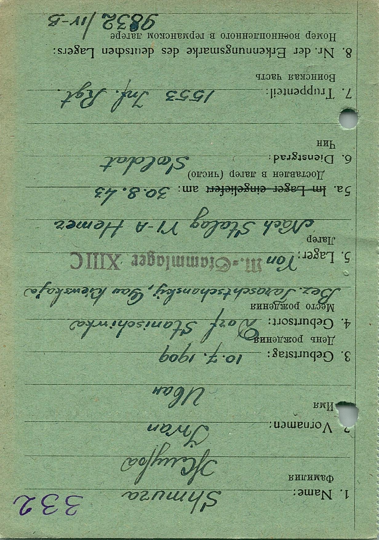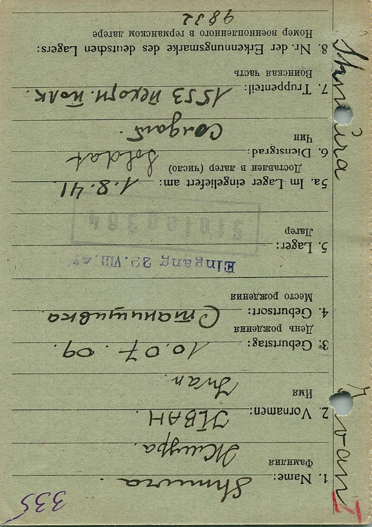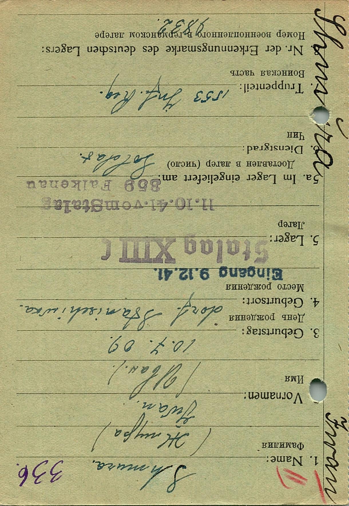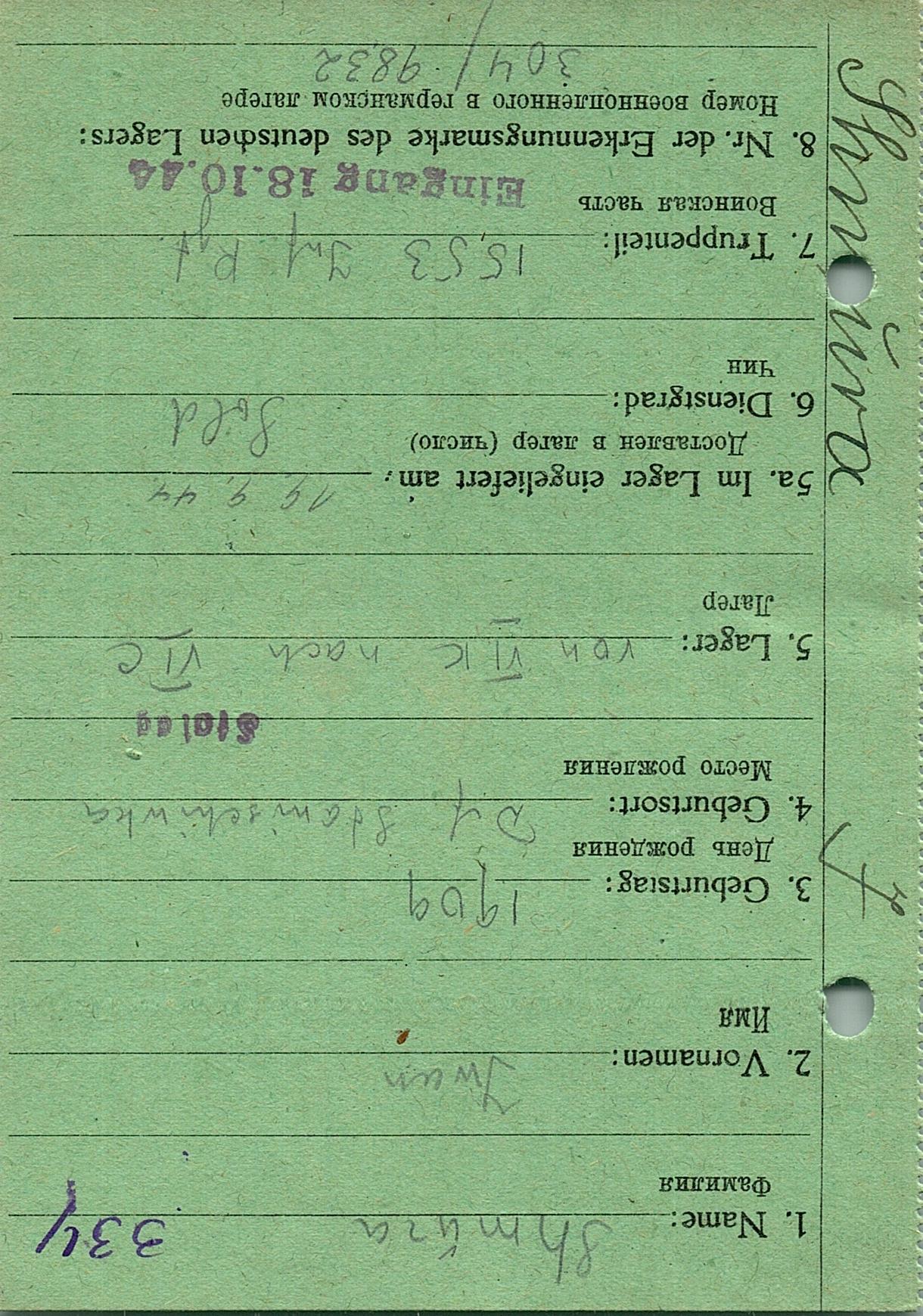 Военнопленные, трофейные карточки. Киевская обл.