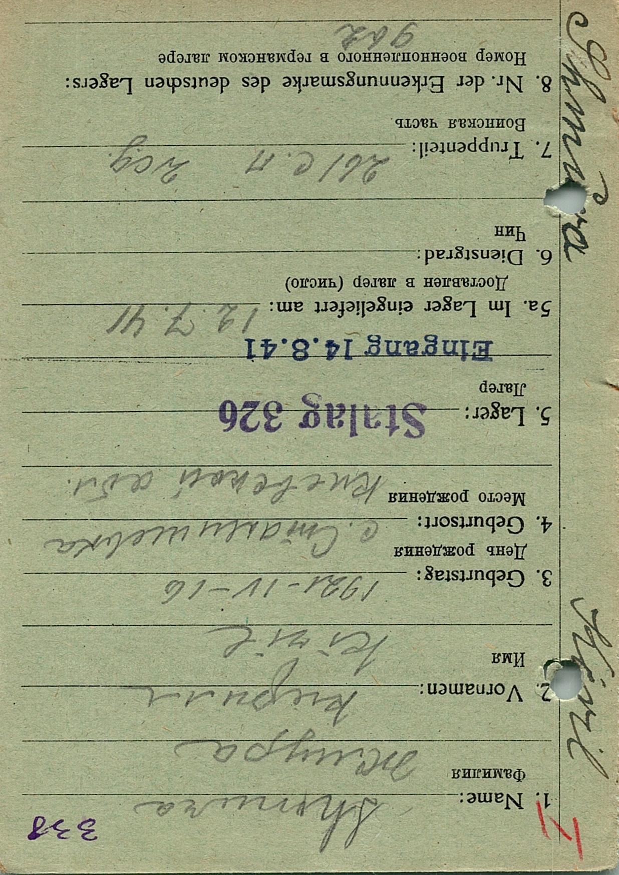 Военнопленные, трофейные карточки. Киевская обл.